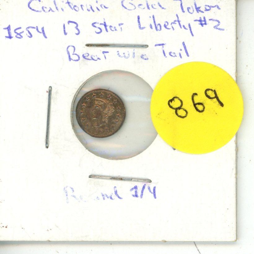 1854 California Gold Token - 13 Star L. Bear W/O Tail