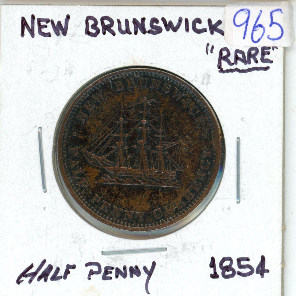 1854 New Brunswick 1/2 penny token