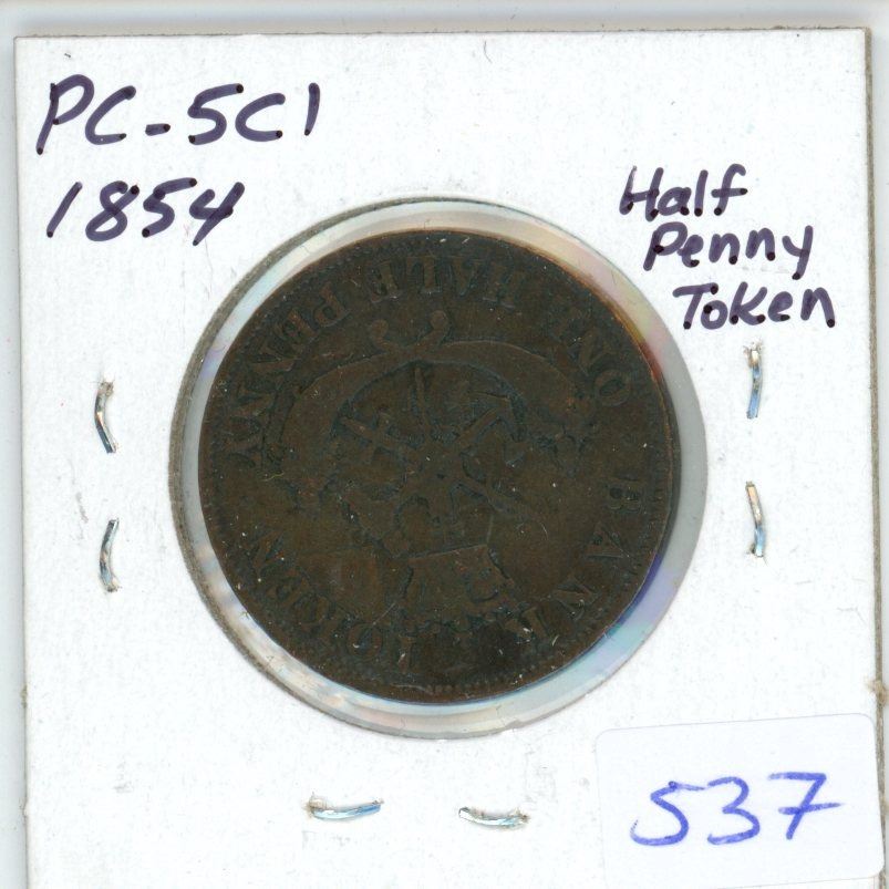 1854 PC-5C1 Upper Canada Half-Penny Token