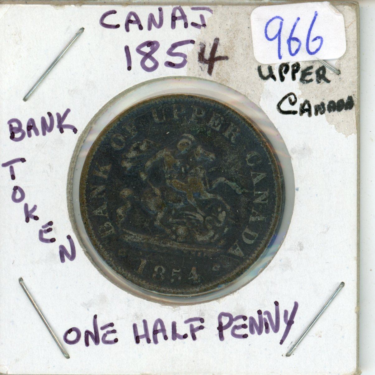 1854 Upper Canada Bank 1/2 penny token