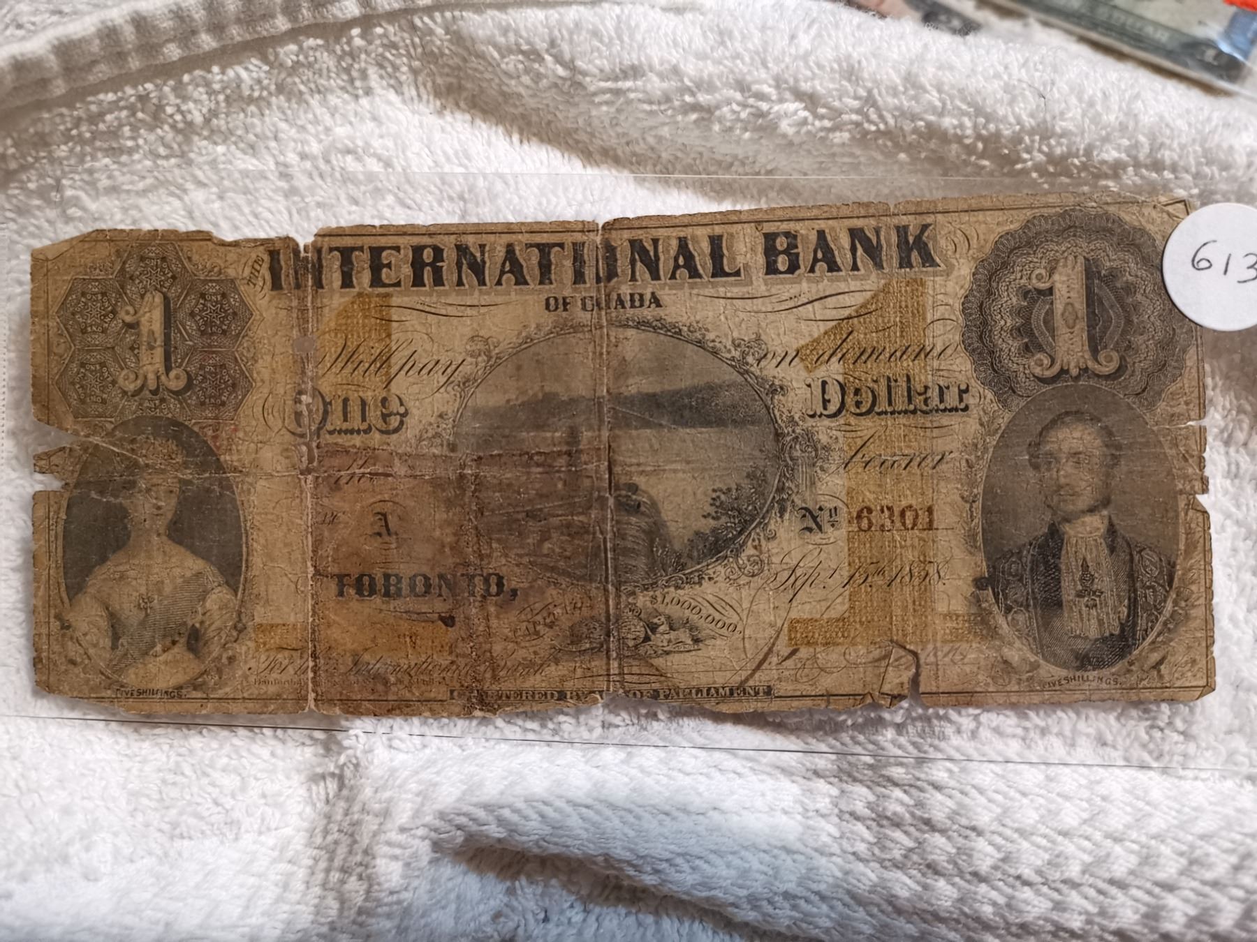 1858 RARE $1 INTERNATIONAL BANK NOTE