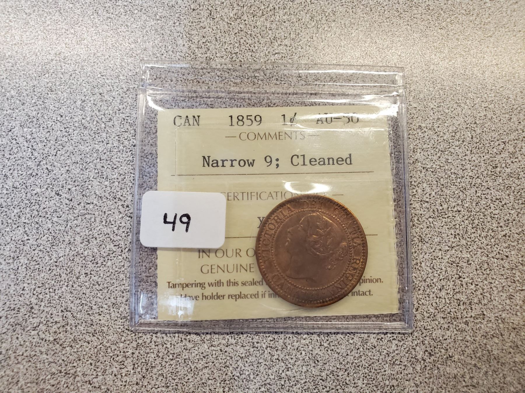 1859 CANADIAN LARGE CENT N9 ICCS AU-50