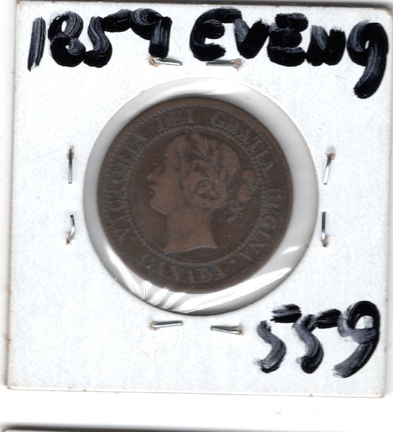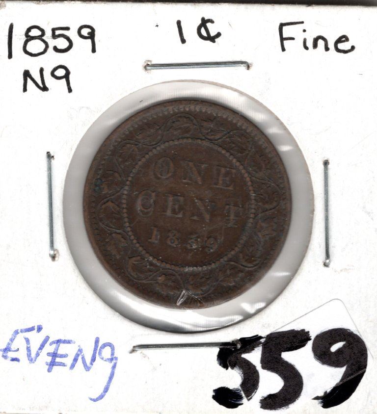 1859 CNDN LARGE 1 CENT PC *NARROW 9 EVEN DATE 9*