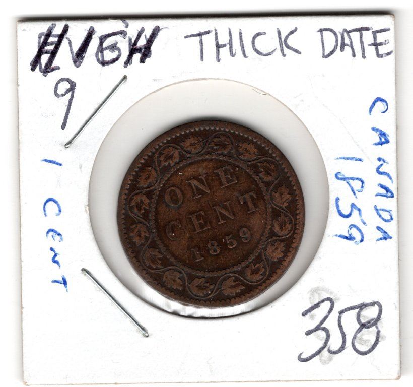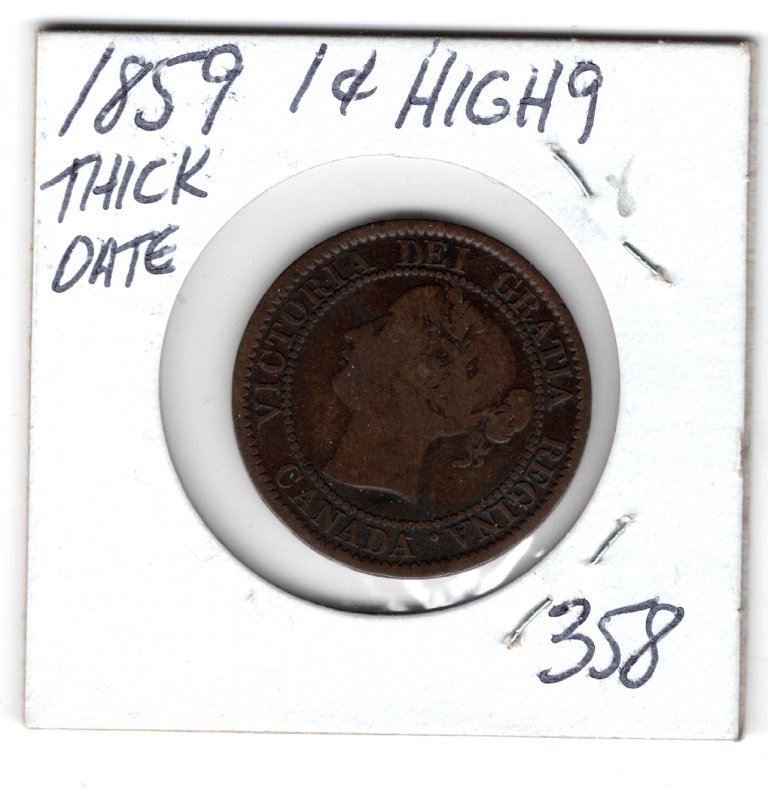 1859 LARGE CENT *HIGH 9 THICK DATE*