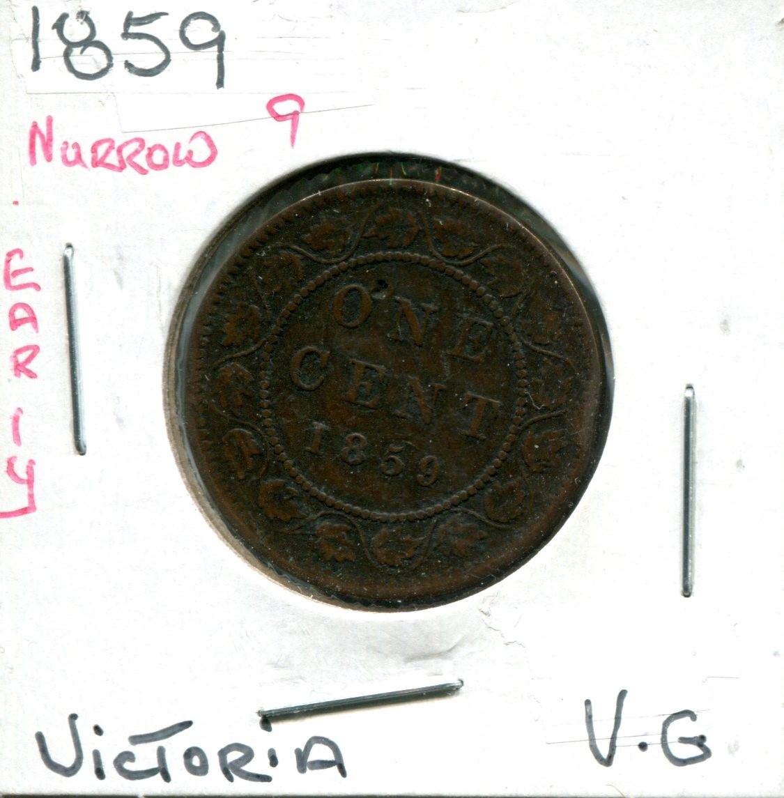 1859 (Narrow 9) Victoria Large One Cent Coin (VG)