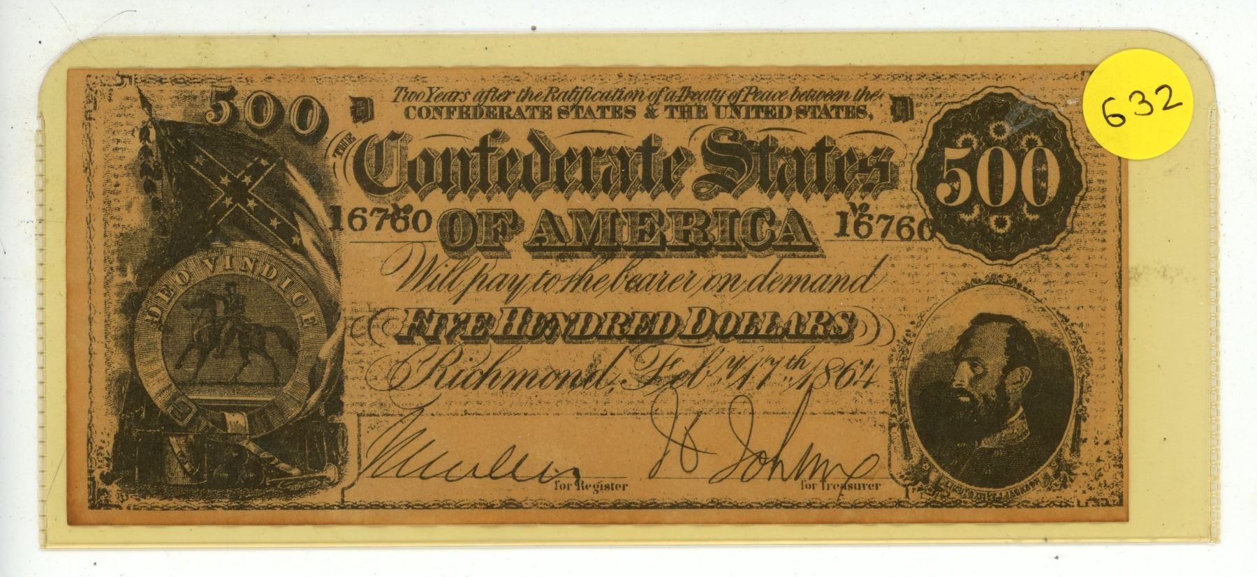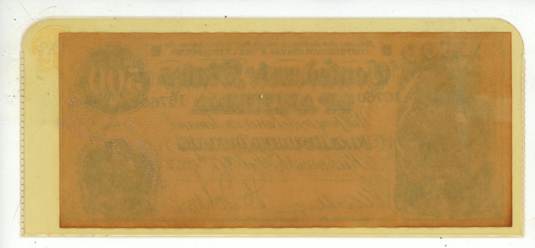 1864 Confederate States of America Five Hundred Dollar note.