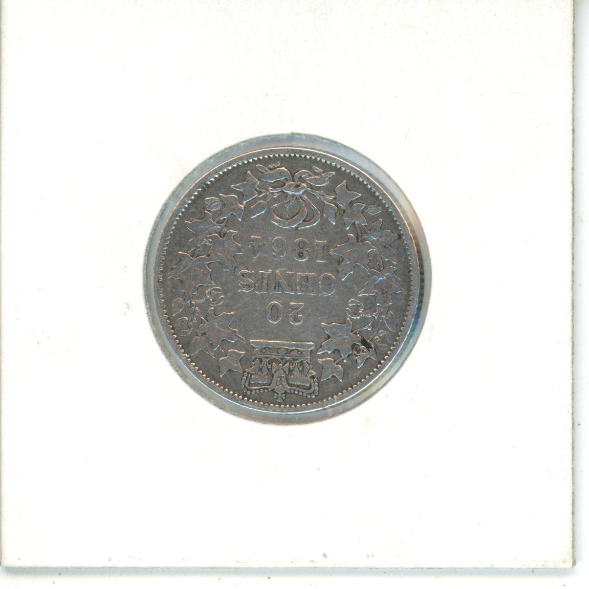 1864 New Brunswick, Canadian 20 cent silver coin - 92.5%