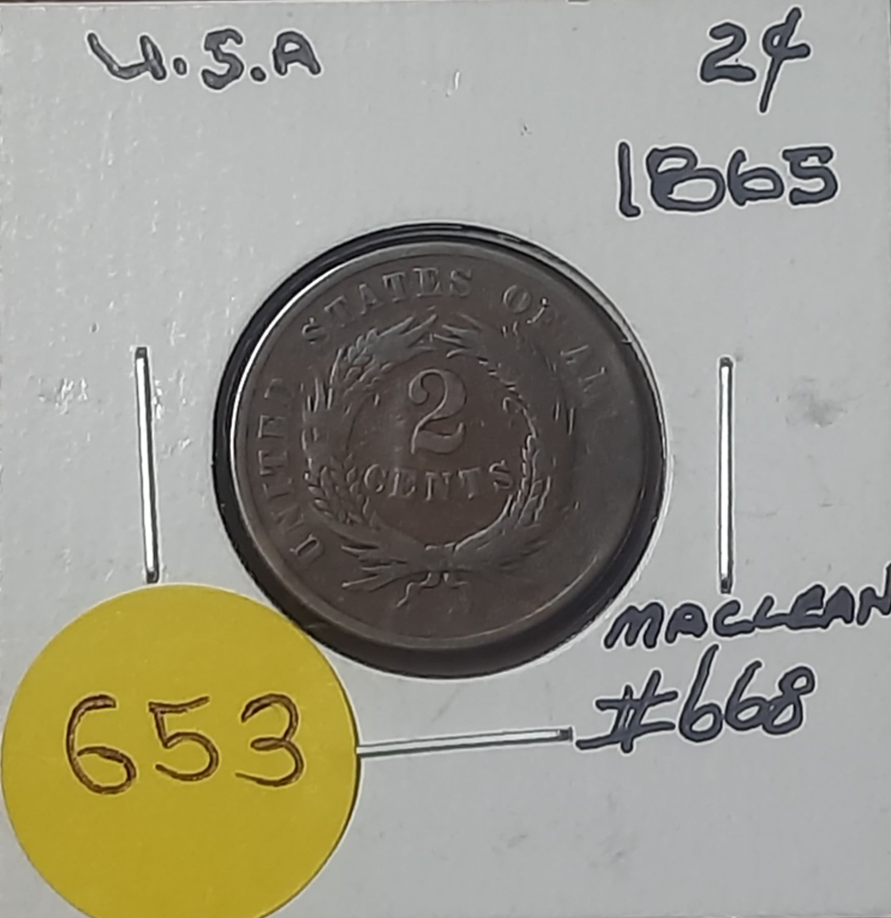 1865 United States Two-Cent Coin.