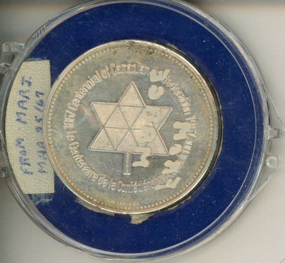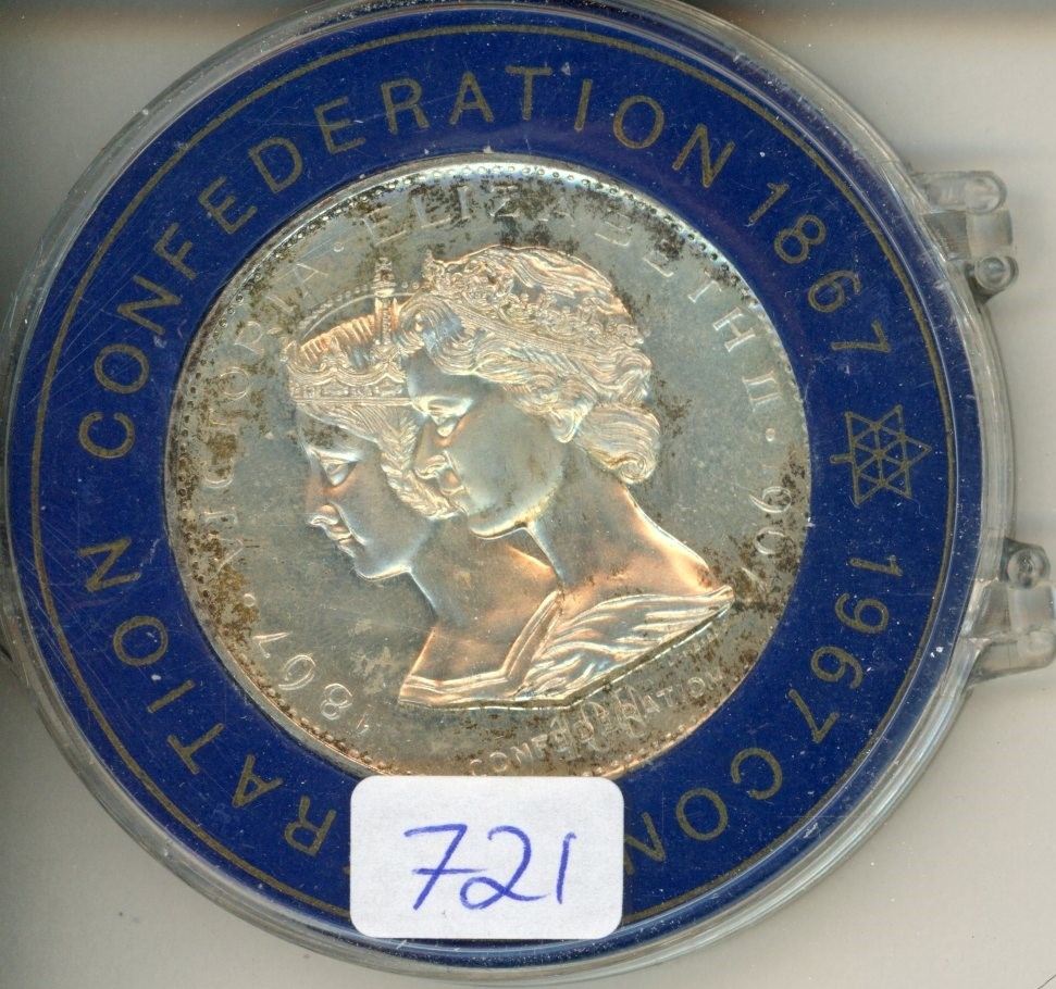 1867 – 1967 Canadian Centennial Silver Medal. Co-joined busts of Queen Victoria & Elizabeth. Housed in its original hard plastic holder. BU.
