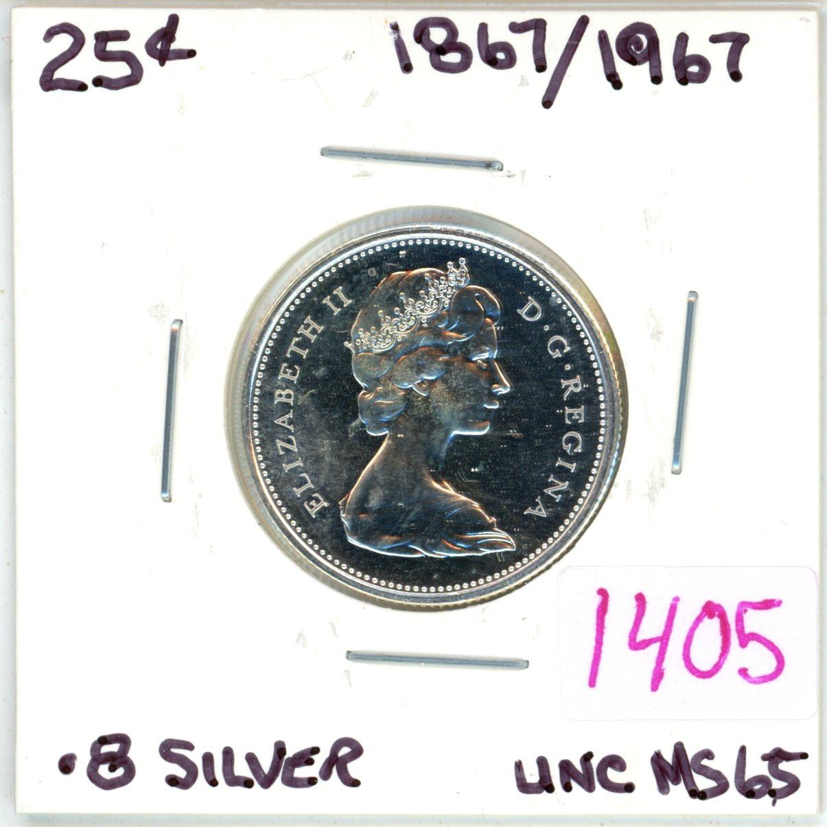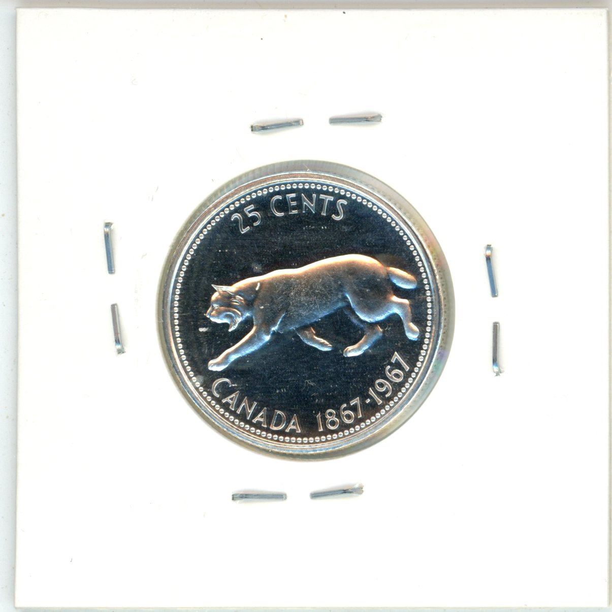 1867-1967 Centennial Canadian 25 cent silver "Lynx" coin