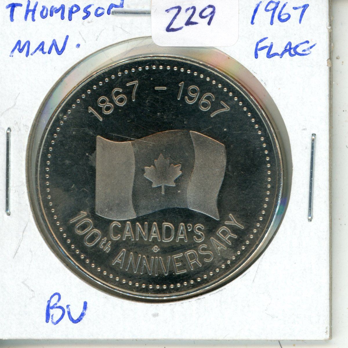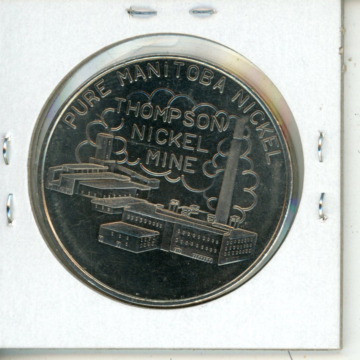 1867 – 1967 Thompson, Manitoba nickel medal celebrating the 100th Anniversary of Canada. Depicts the new Canadian flag. Rev: Pure Manitoba Nickel, Thompson Nickel Mine. Uncirculated.