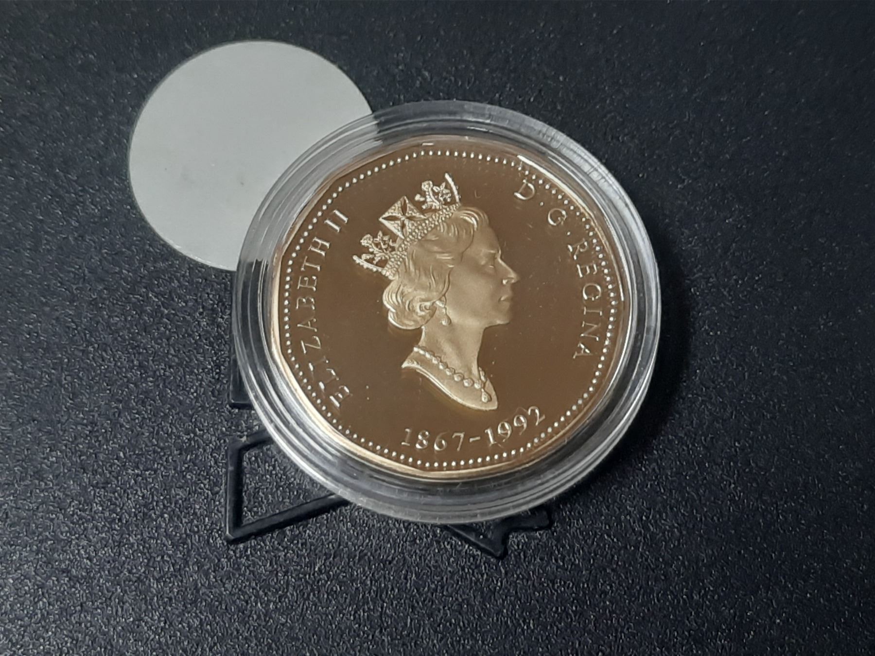 1867 – 1992 125th Anniversary of Canada Loonie Dollar. Peace Tower. Proof with Ultra Heavy Cameo.