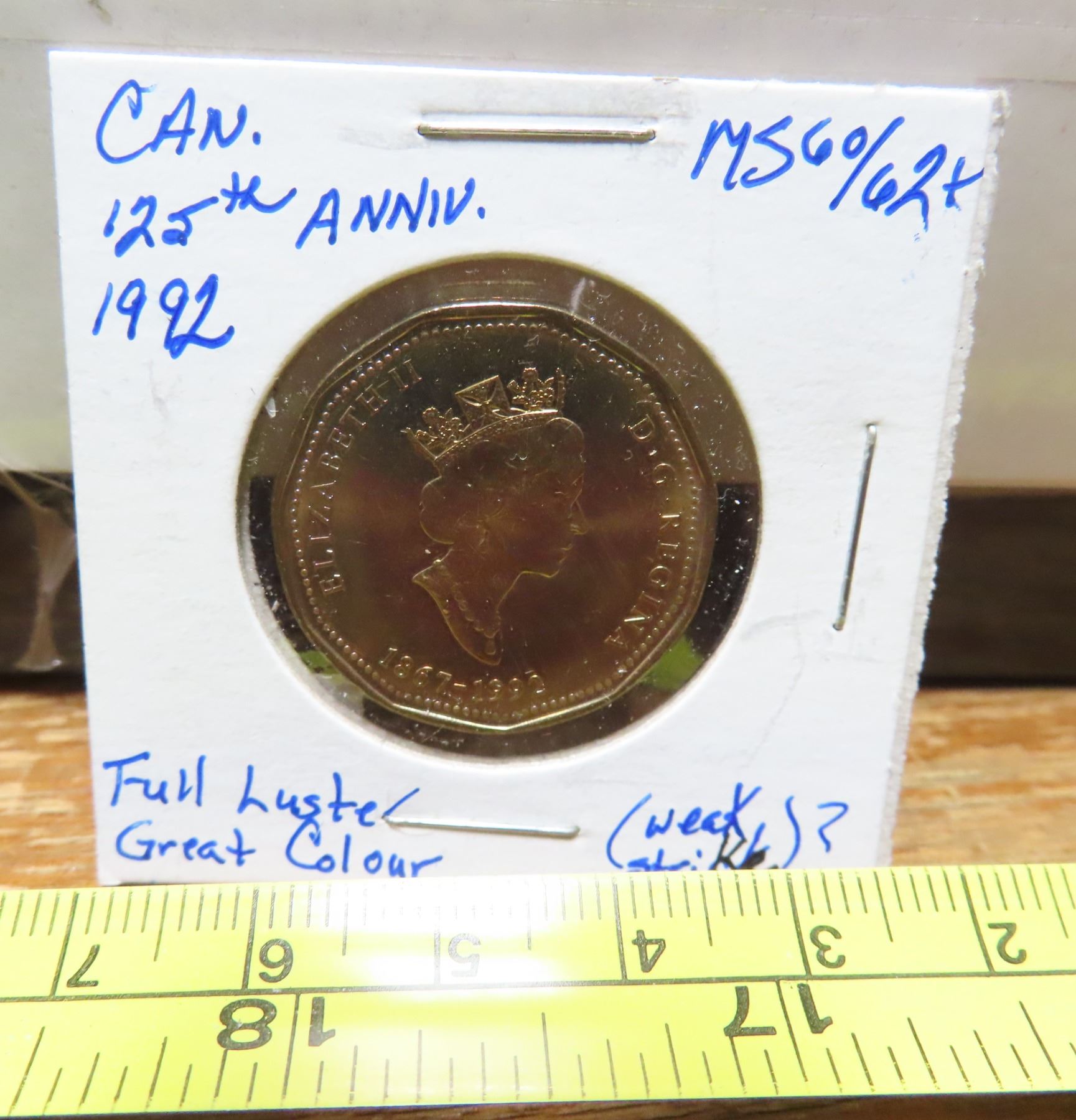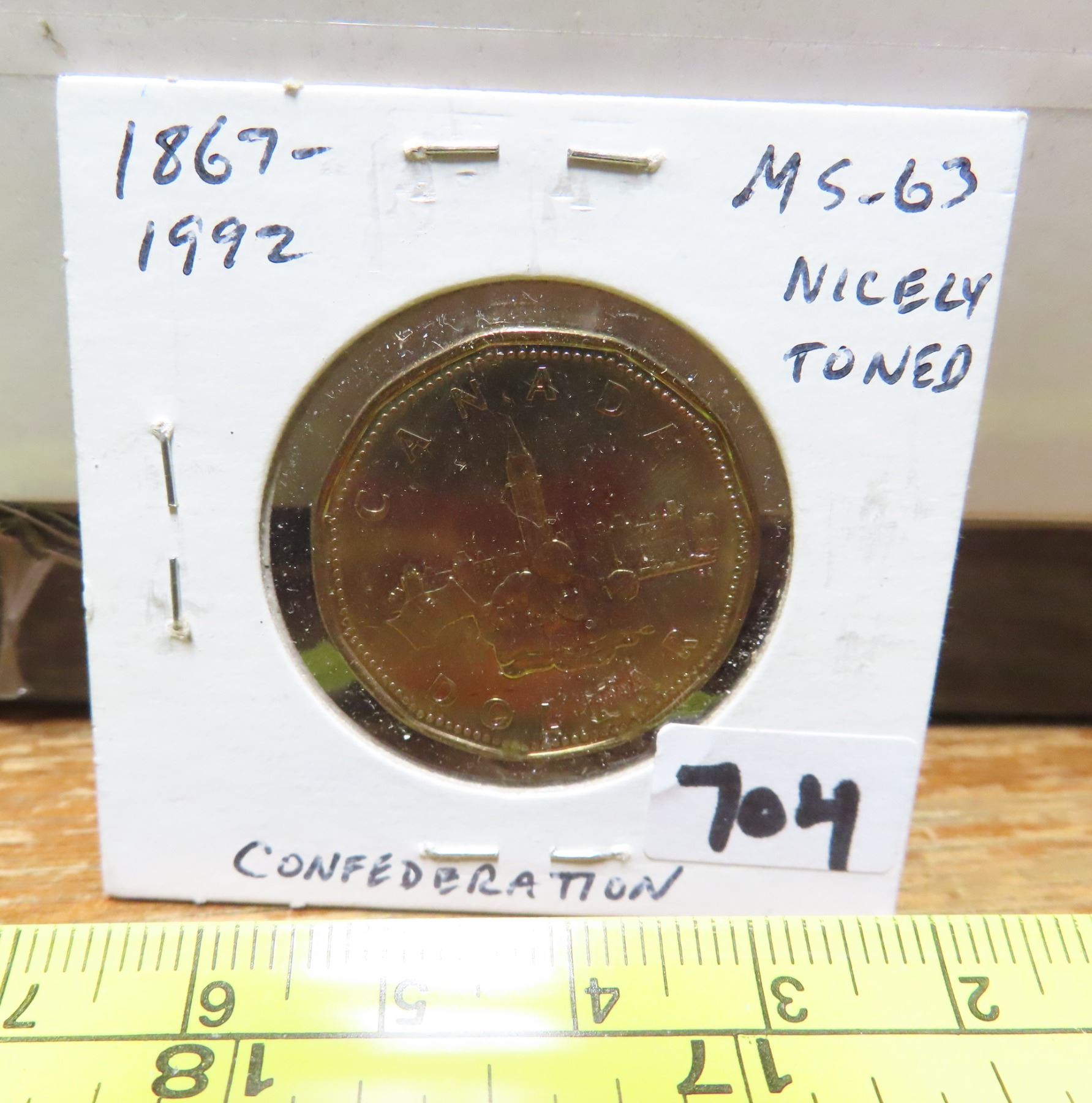 1867 – 1992 Canadian Loonie Dollar. Celebrates the 125th Anniversary of Canada. MS-63. Nicely Toned.