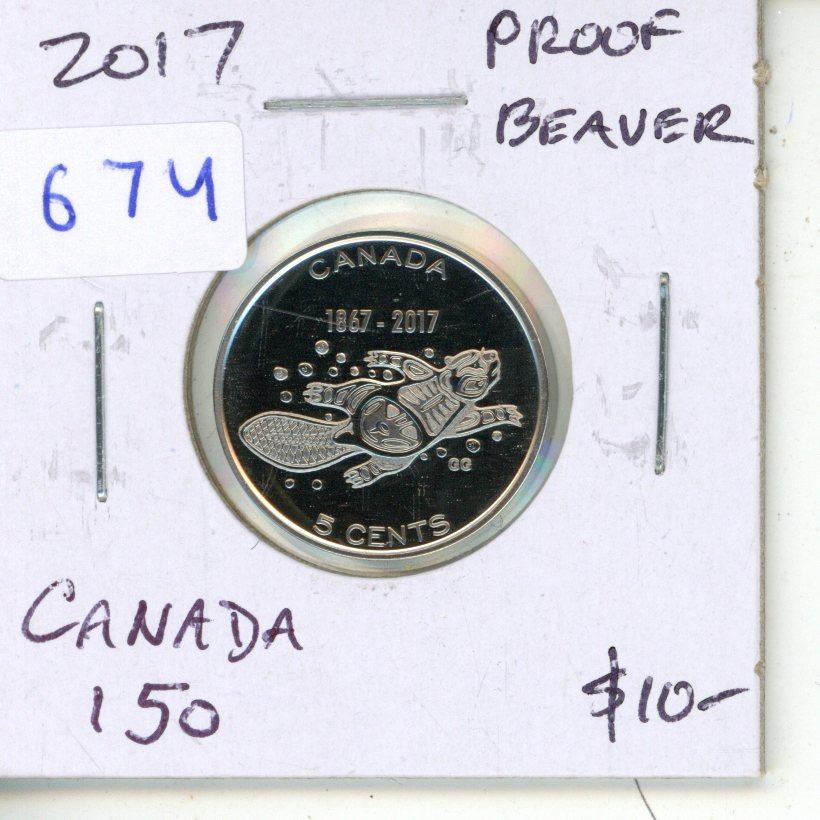1867 - 2017 Proof 150th Anniversary of Canada 5 Cents. Stylized Beaver. One Year Type. Ultra-Heavy Cameo.