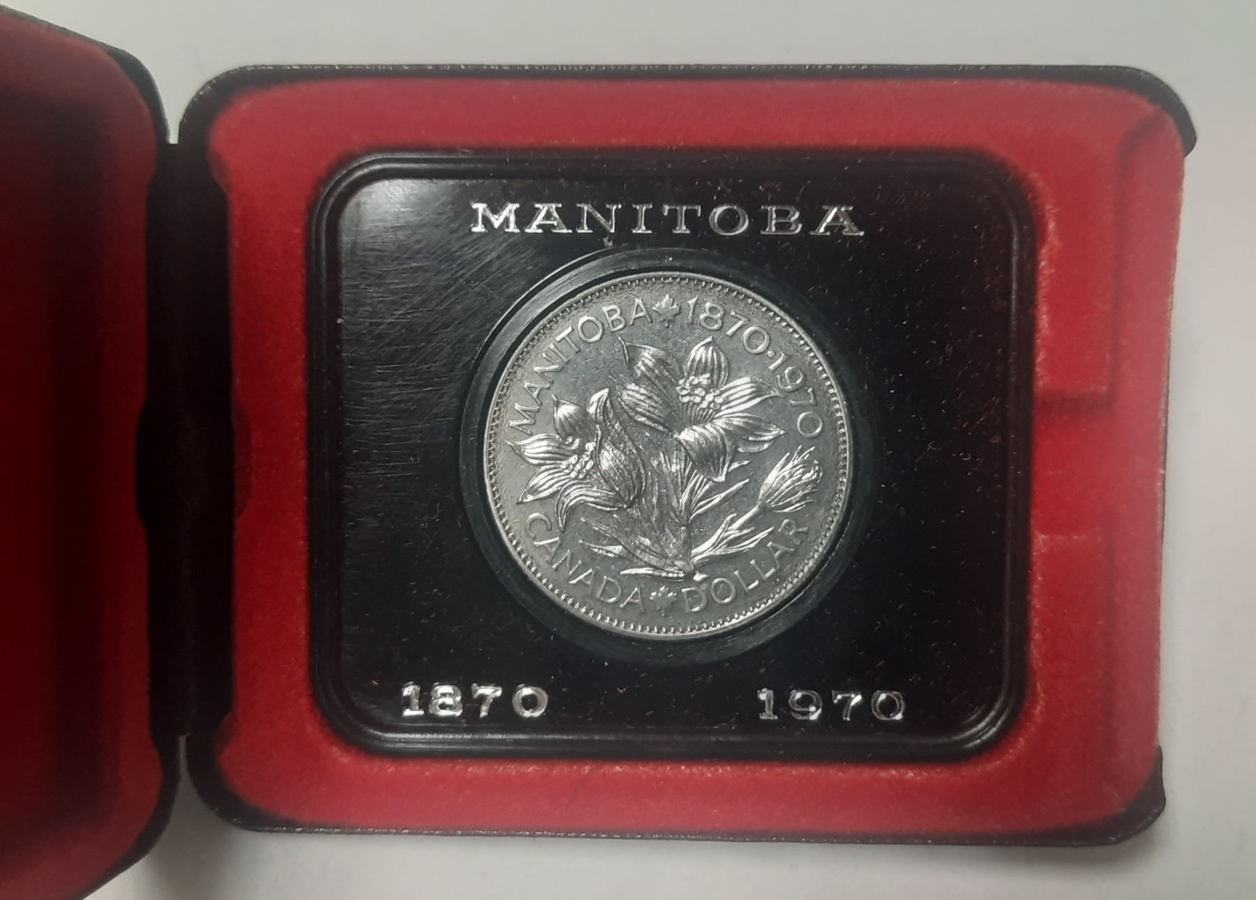 1870 – 1970 Manitoba Centennial Nickel Dollar. Specimen. Housed in its original case.