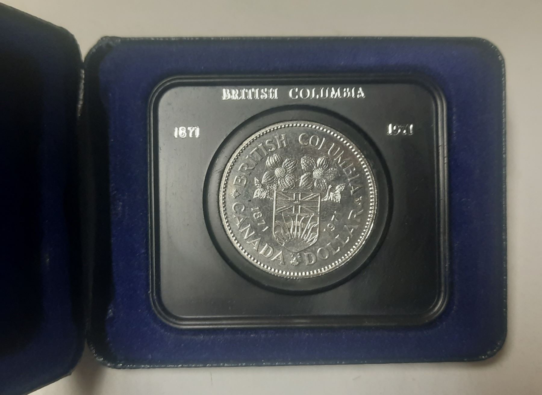 1871 – 1971 British Columbia Centennial Nickel Dollar. Specimen. Housed in its original case.