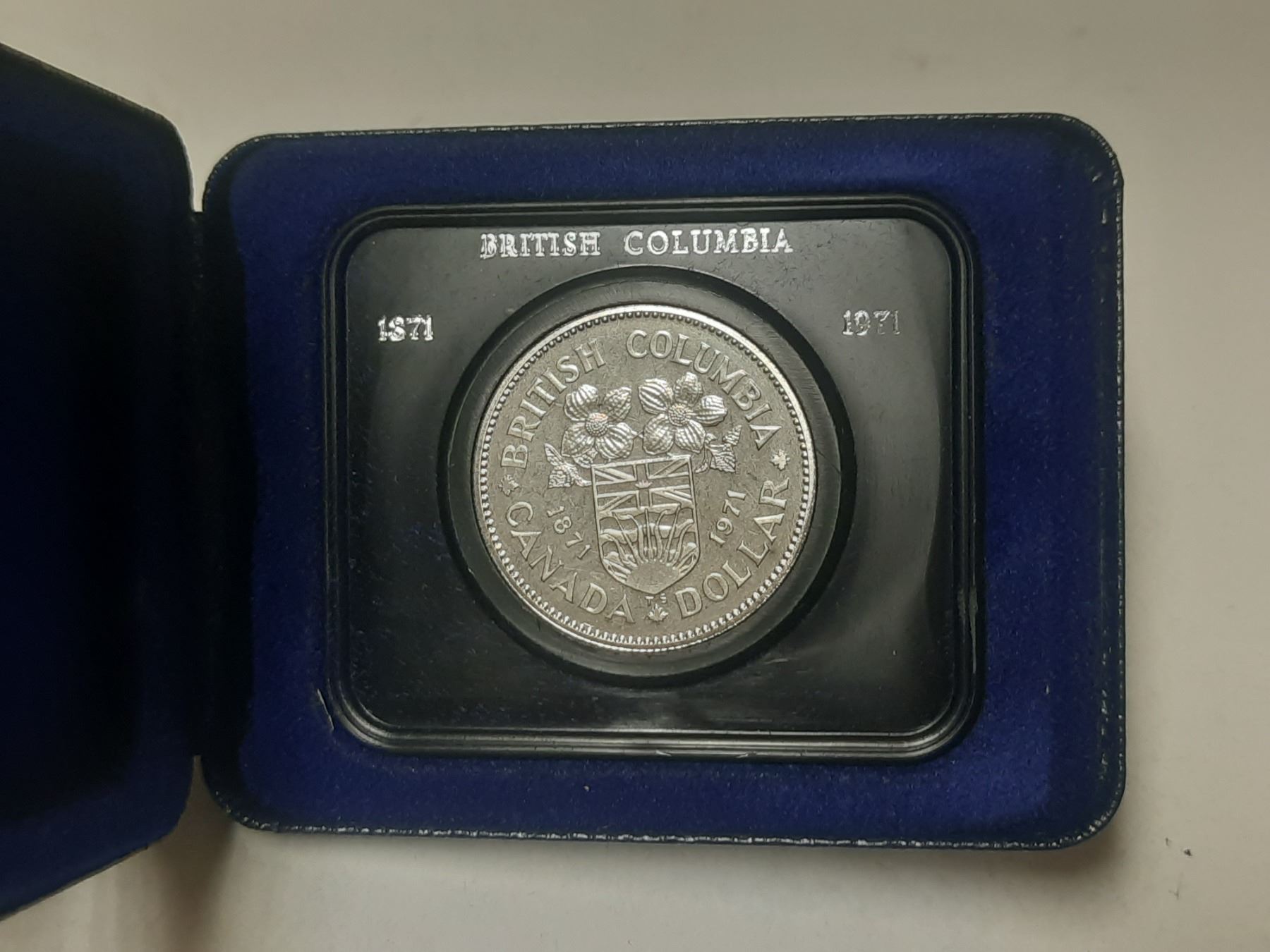 1871 – 1971 British Columbia Centennial Nickel Dollar. Specimen. Housed in its original case.
