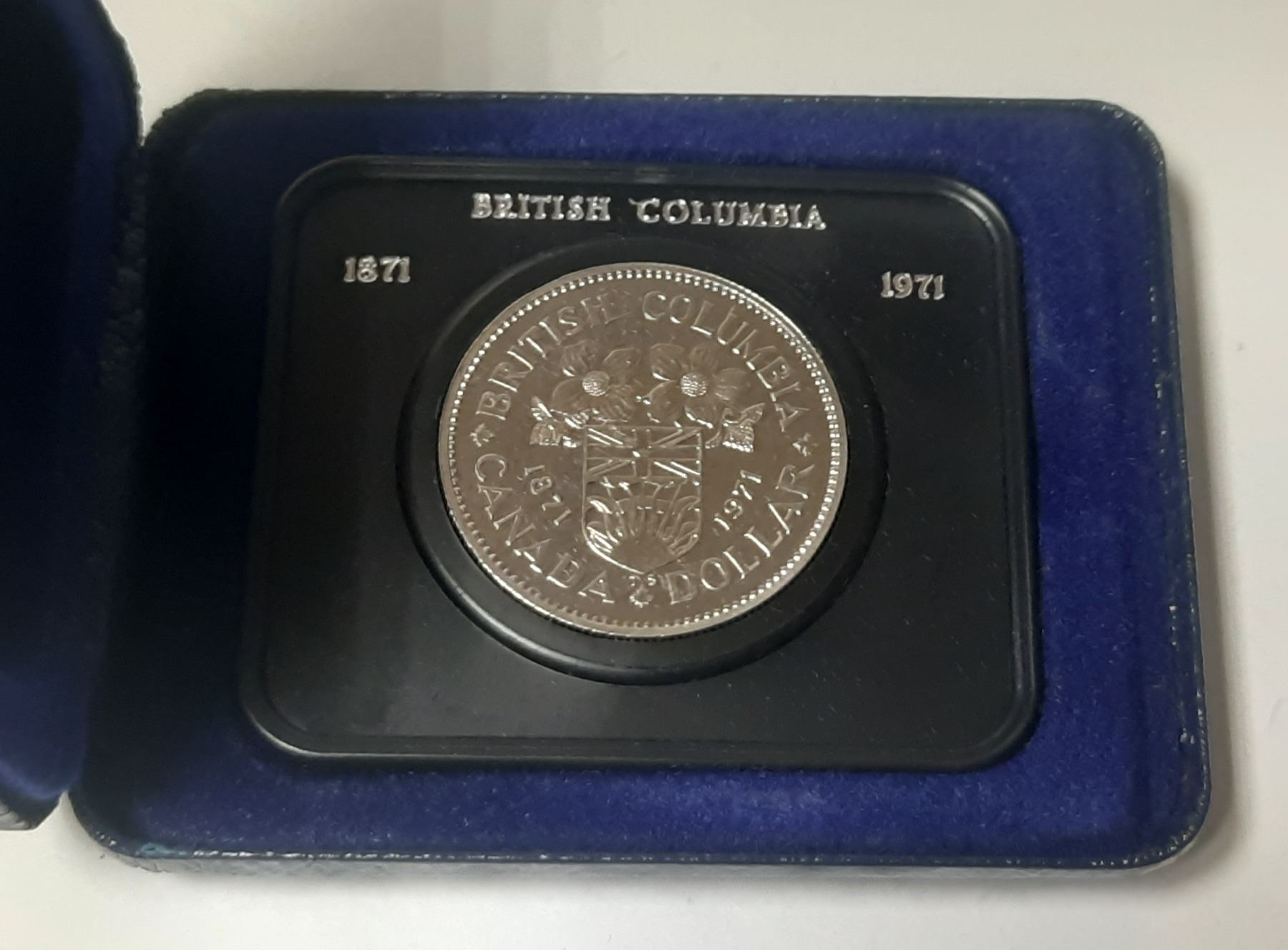 1871 – 1971 Canadian Nickel Dollar. 100th Anniversary of BC joining Canada. Specimen. Housed in its original RCM case.