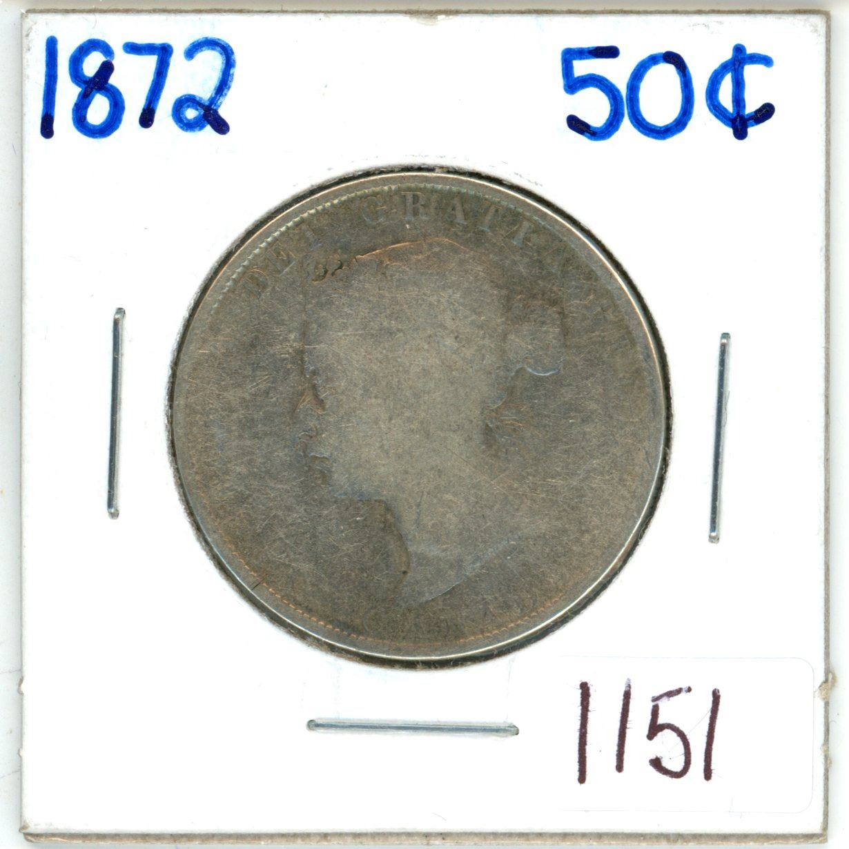 1872 Canadian silver 50 cent coin