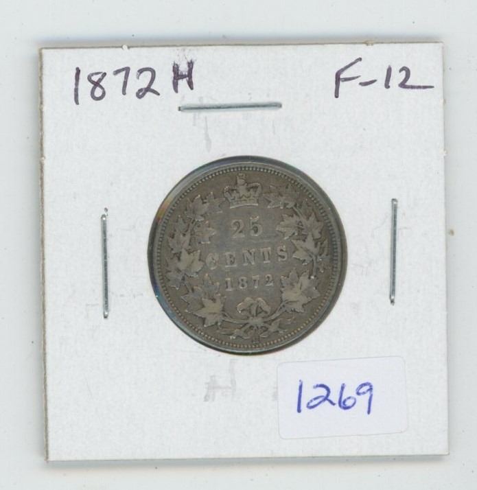 1872H Victorian Silver 25 Cents. Heaton Mint. F-12.