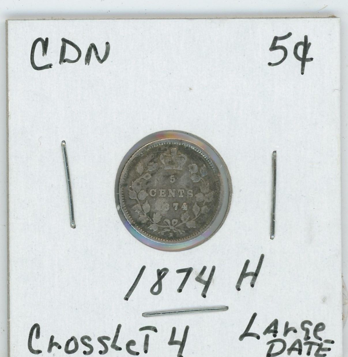 1874 H CDN 5 Cent Crosslet 4 Large Date