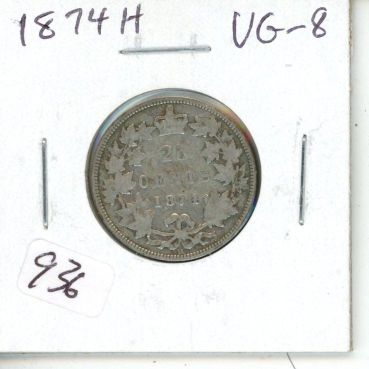 1874H Victorian Silver 25 Cents. Heaton Mint. VG-8.