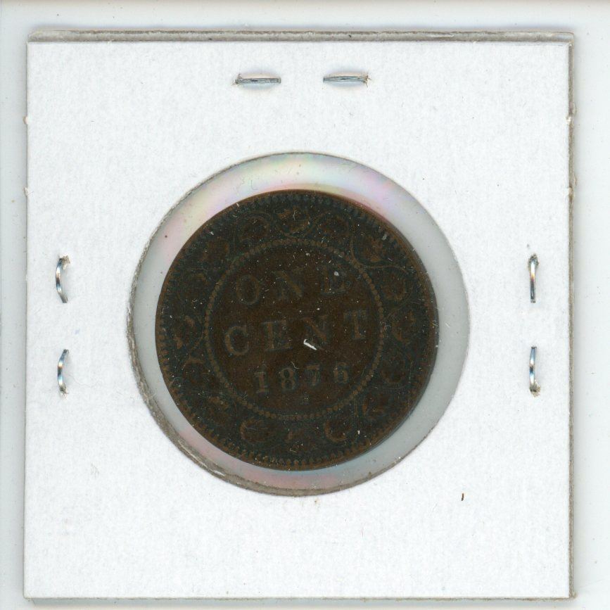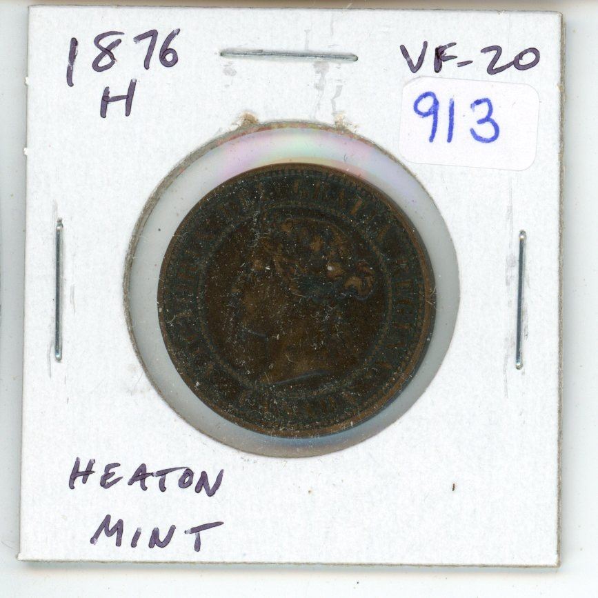 1876H Canadian Victorian Large Cent. The first Canadian Large Cent issued after Confederation in 1867. Also, the first Canadian coin minted by the Heaton Mint. VF-20.
