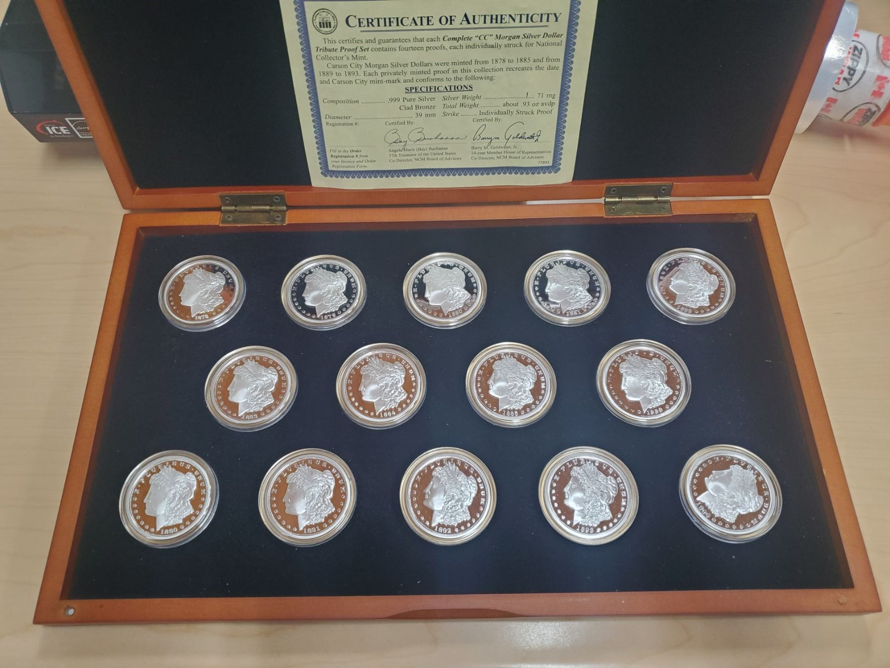 1878-1893 Complete CC Morgan Silver Dollar Tribute Proof Set in Case .999 silver CLAD bronze