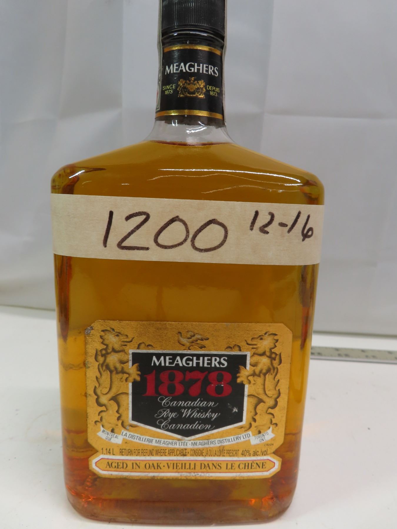 1878 meaghers canadian rye whiskey 1.14L