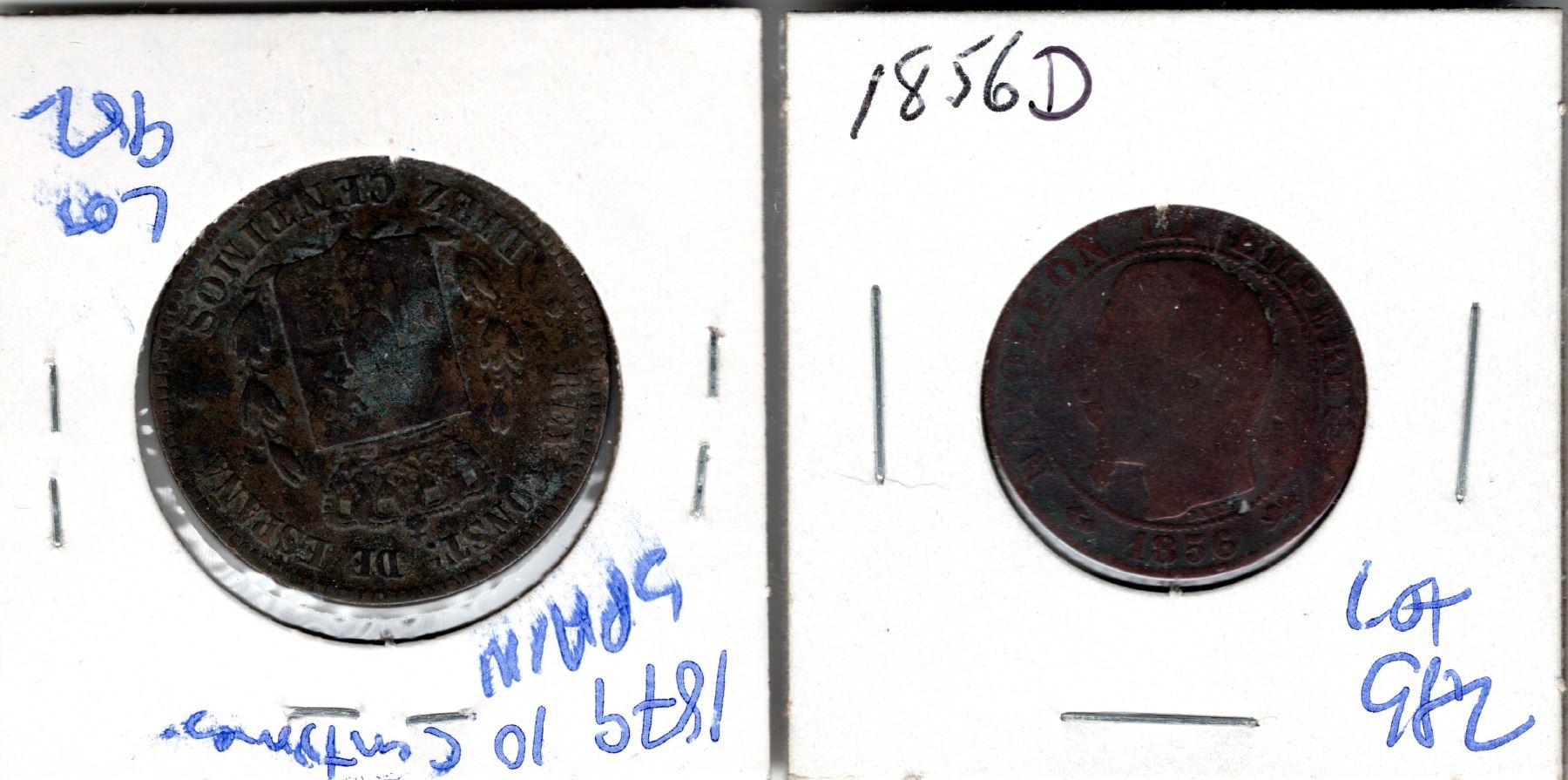 1879 SPAIN 10 CENTIMES, AND 1856D FRENCH COIN