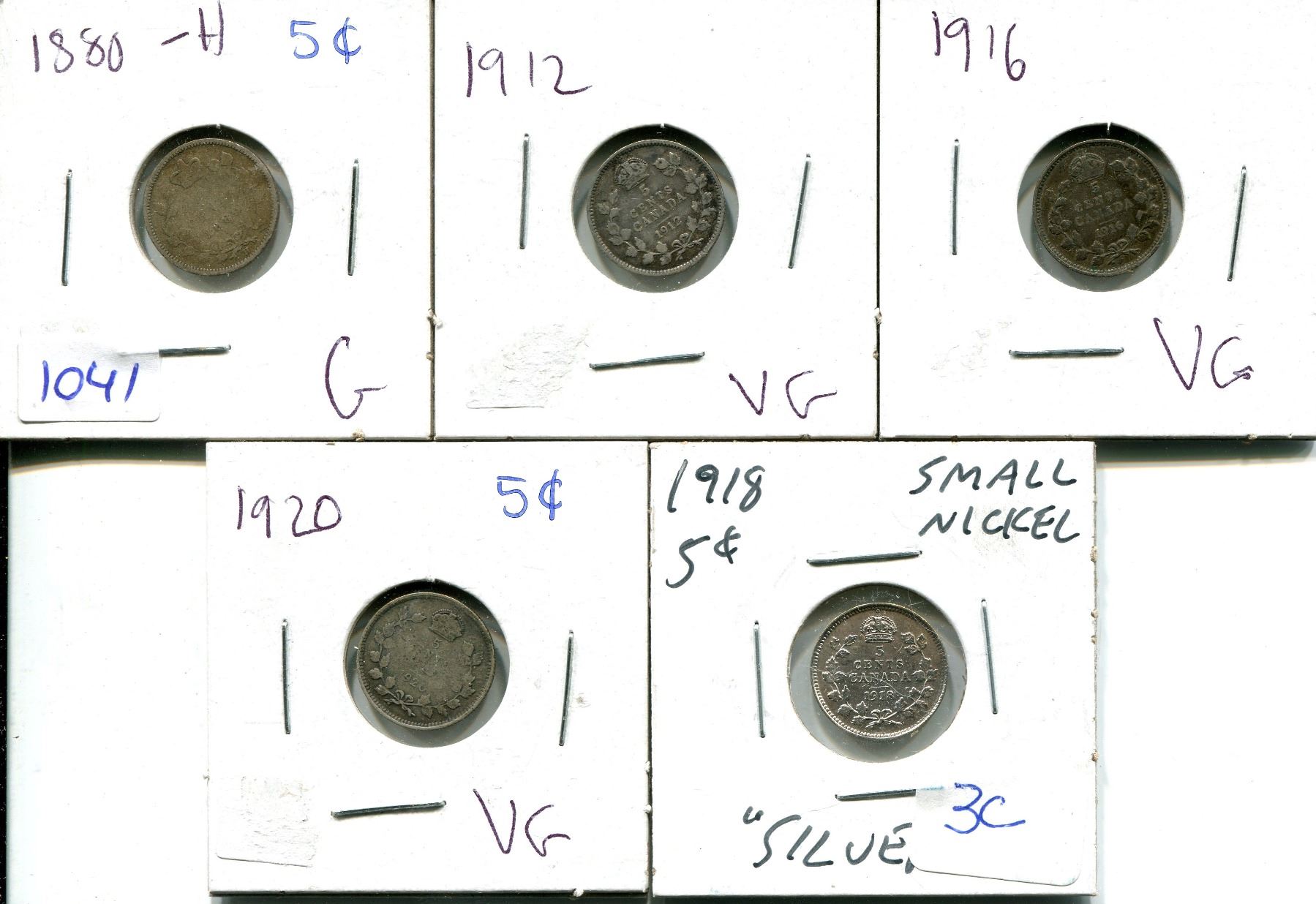 1880, 1912, 1916, 1918, 1920 5 CENTS