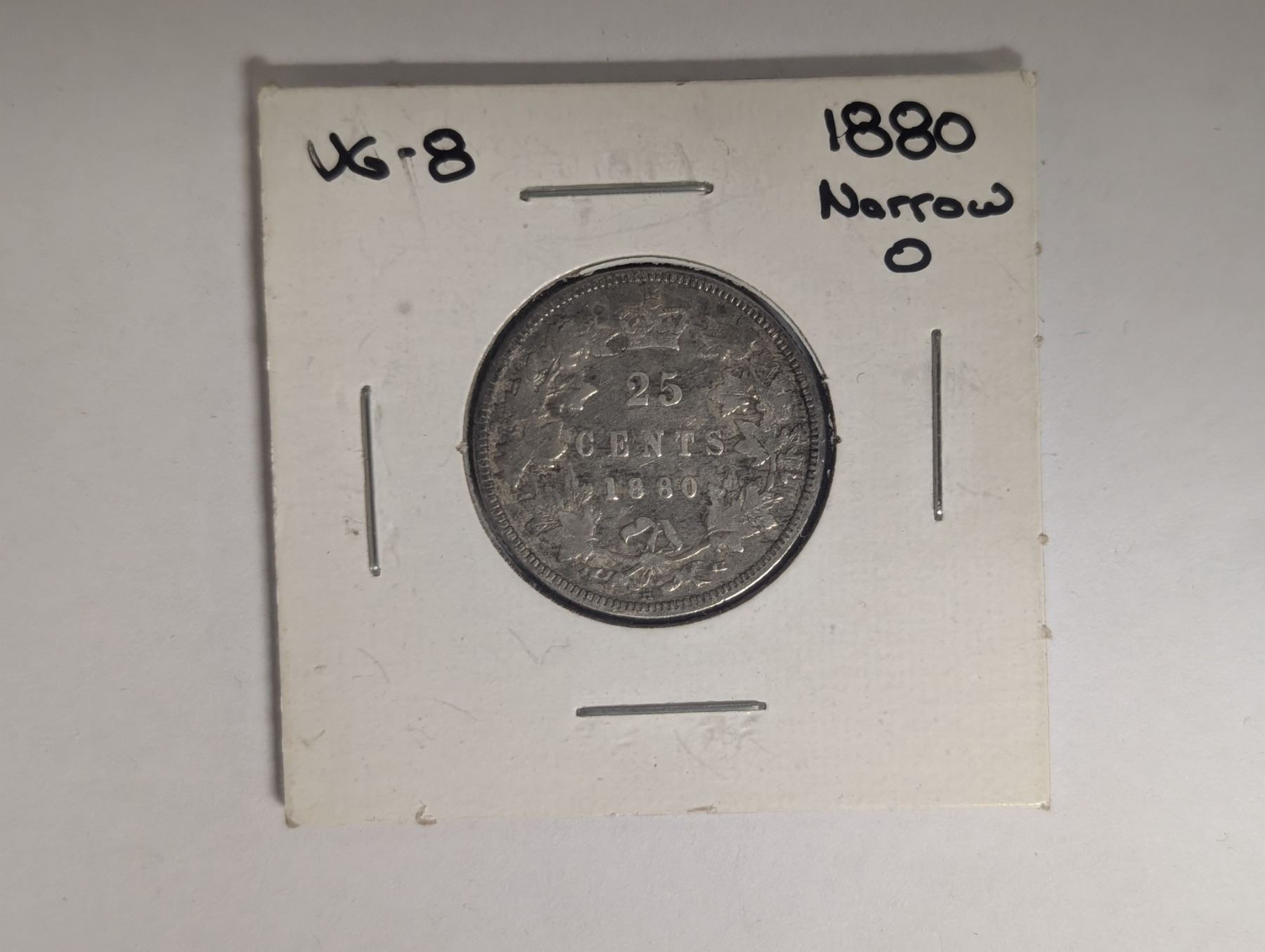 1880 Narrow O VG-8 Canadian 25 Cent Coin