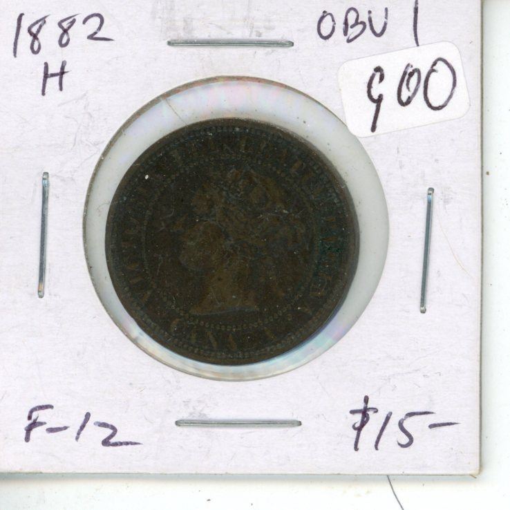 1882H Obverse 1 Victorian Large Cent. Heaton Mint. F-12.