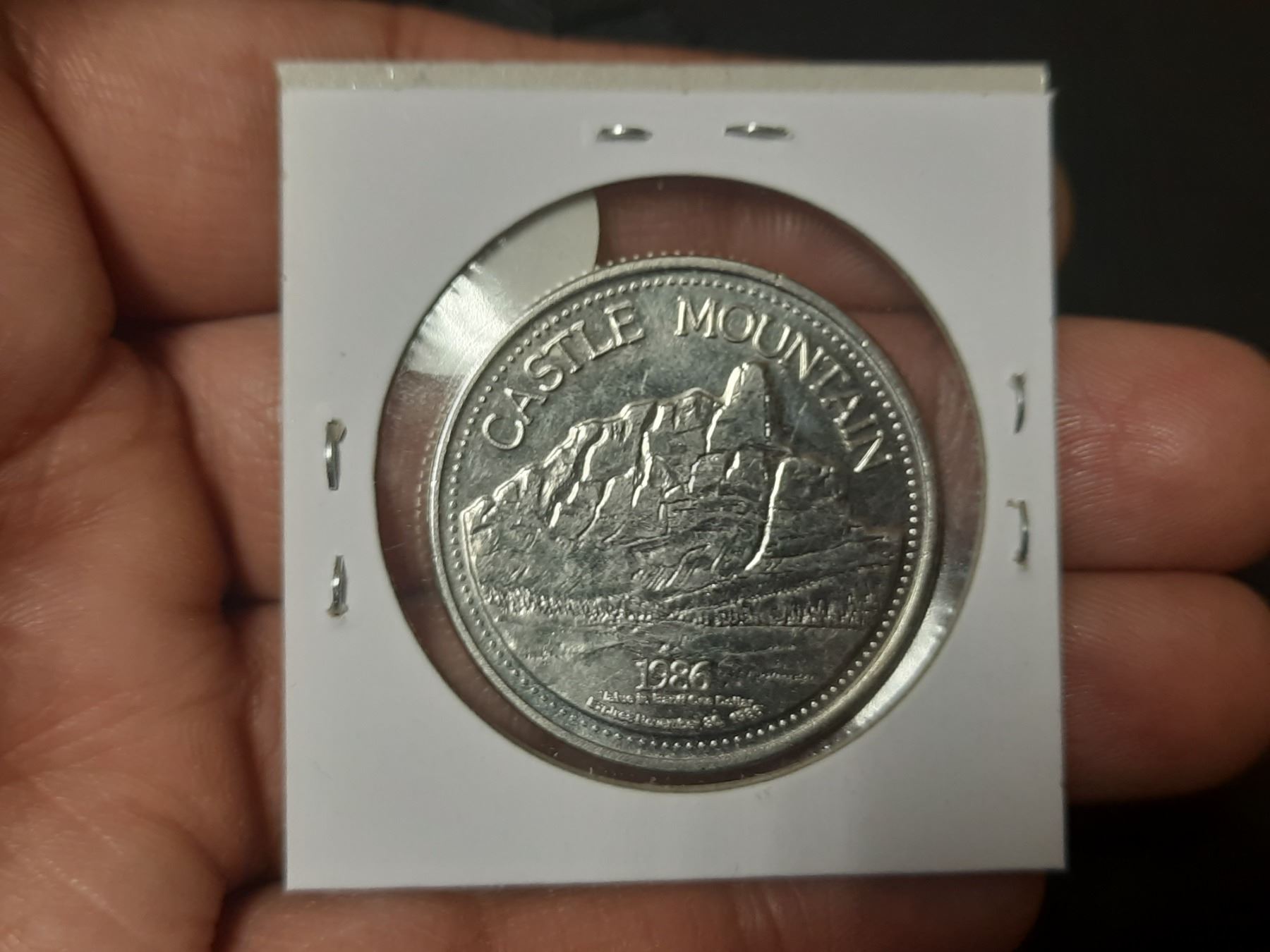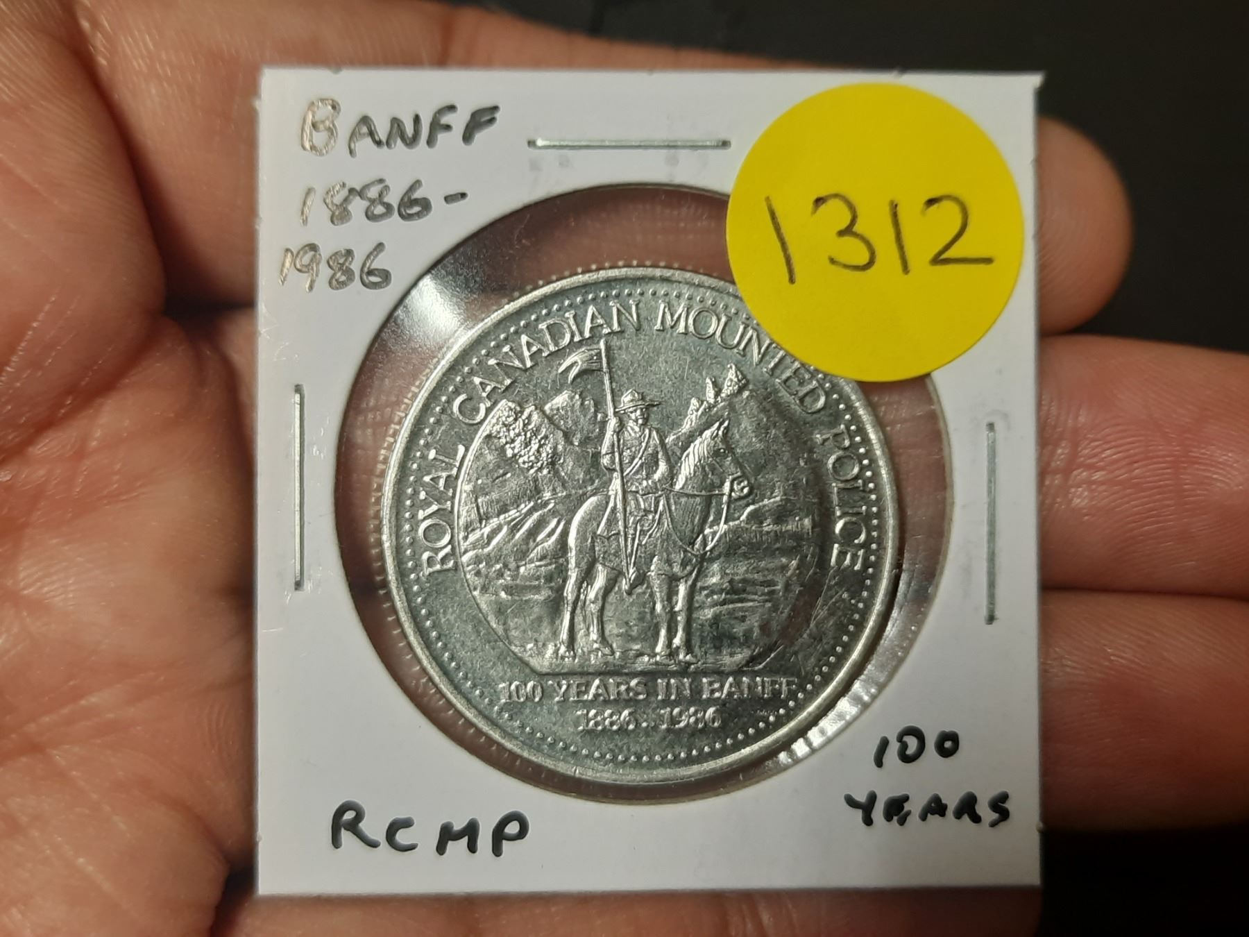 1886 – 1986 Banff Trade Dollar commemorating 100 years of the RCMP in Banff. Unc.