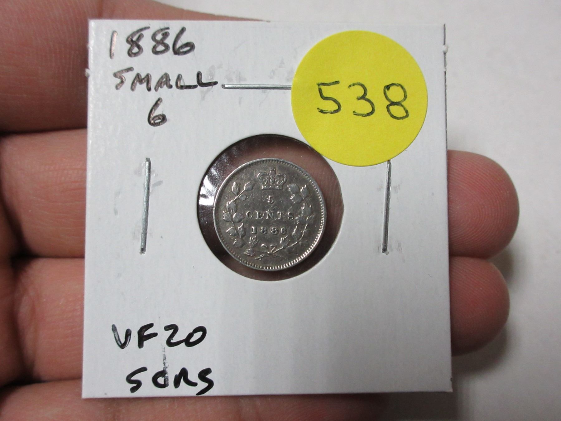1886 Canadian Victorian Silver 5 Cents. Small 6 variety. VF20. Scratches.