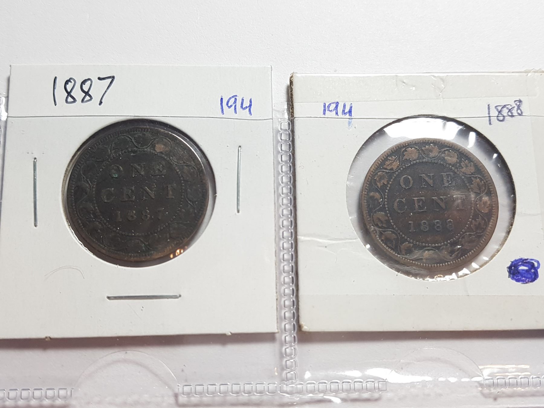 1887 AND 1888 LARGE ONE CENT COINS - CANADA