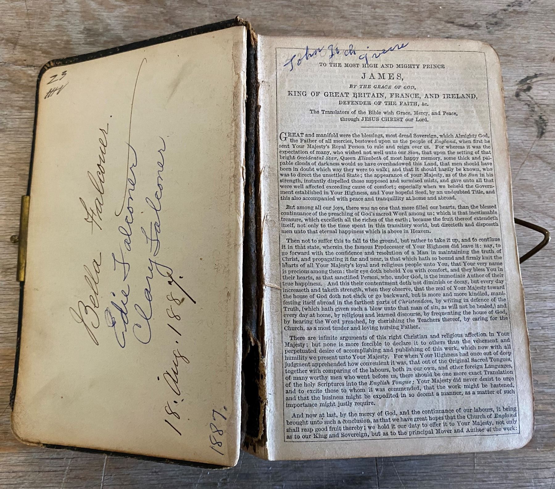 1887 KING JAMES BIBLE W/BRASS CLASP