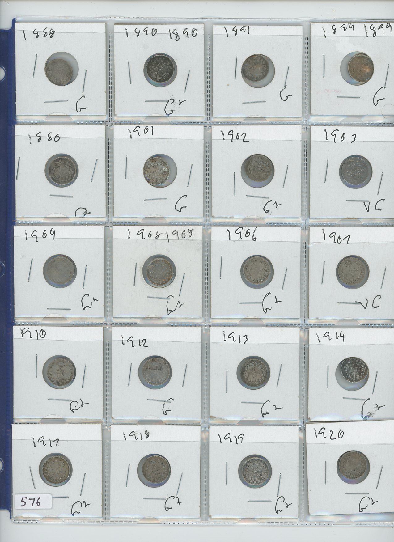 1888,1889,1899 CANADIAN 5 CENT