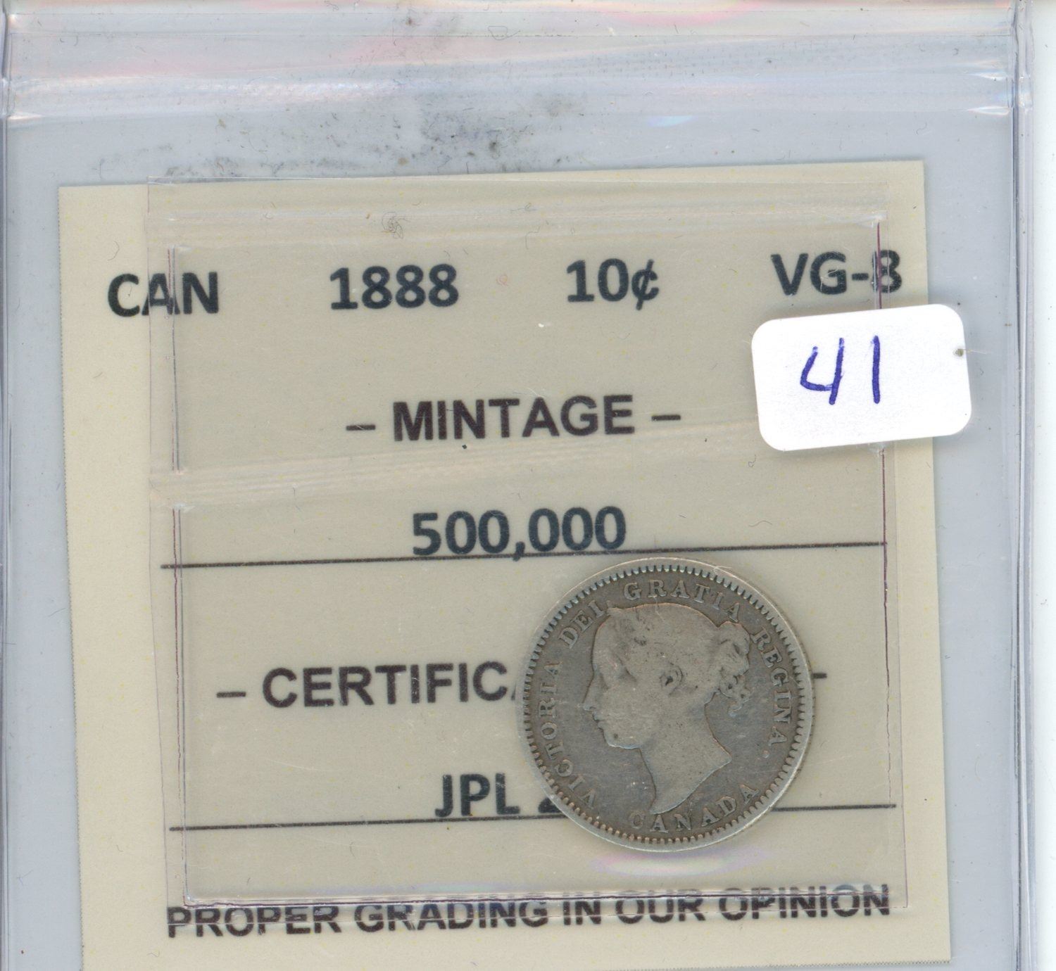 1888 Canadian Silver 10 Cents. CCGG certified & graded VG-8.