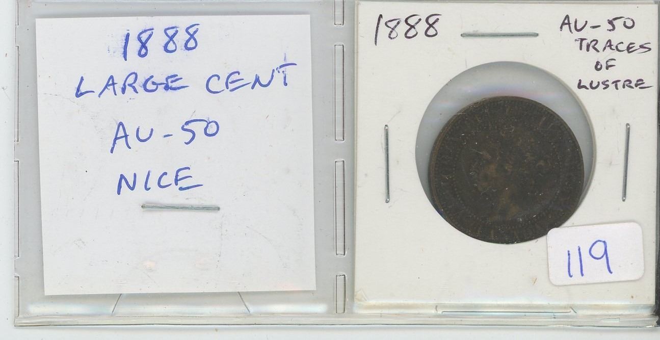 1888 Canadian Victorian Large Cent. AU-50. Traces of Lustre. Nice.
