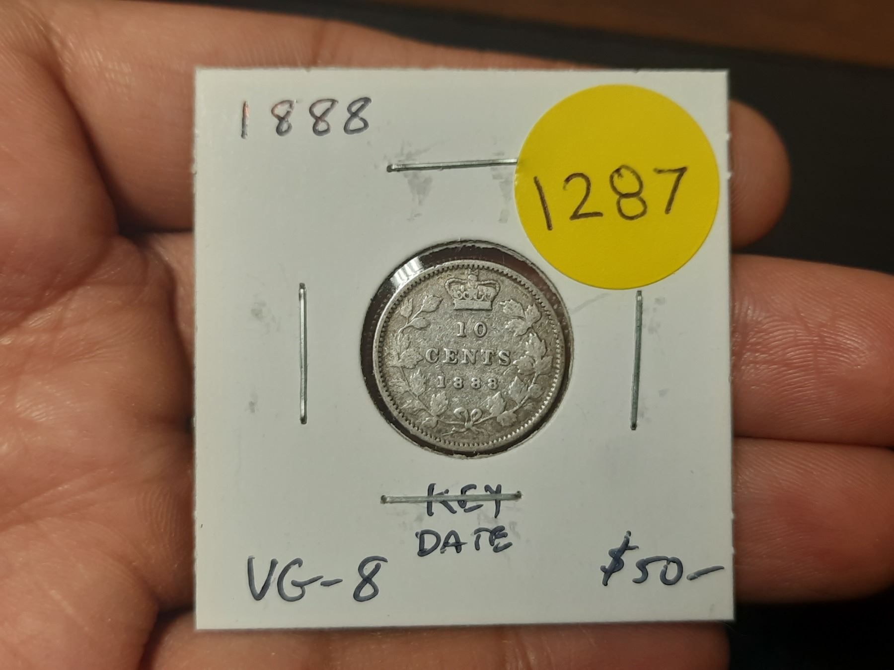 1888 Canadian Victorian Silver 10 Cents. Key Date. VG8.
