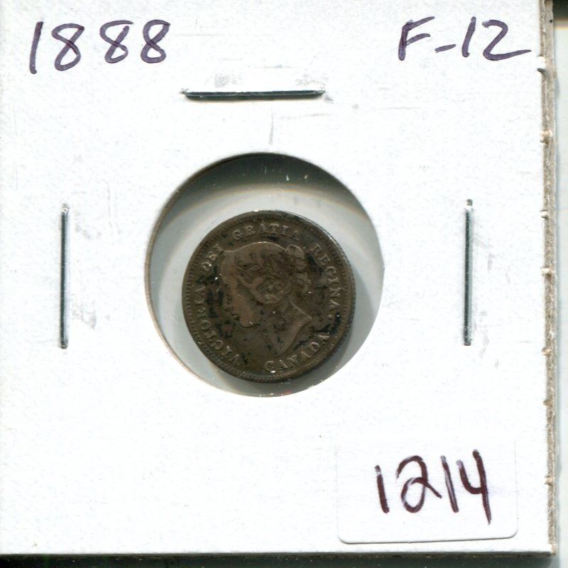 1888 Canadian Victorian Silver 5 Cents. F-12.