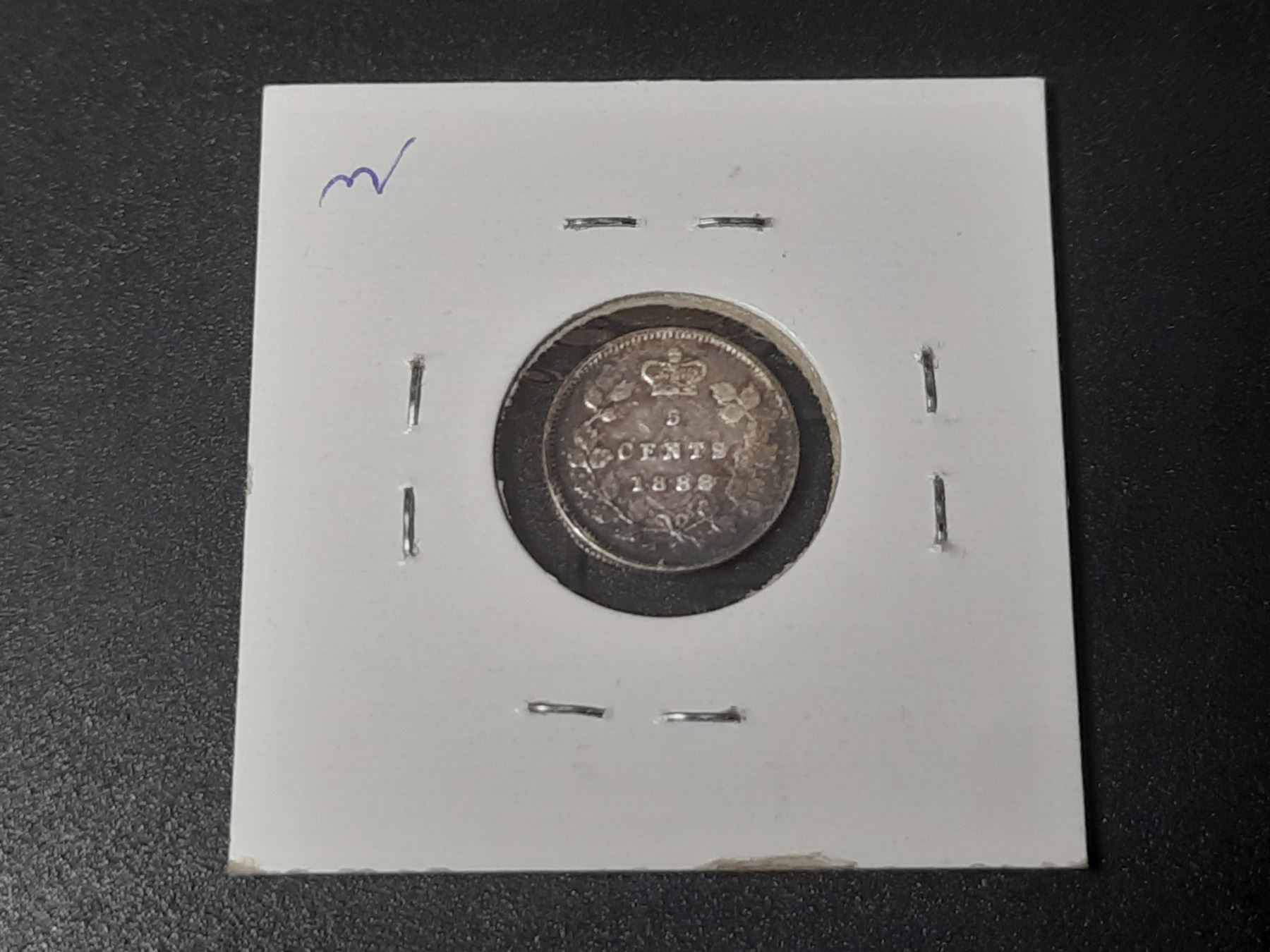 1888 Canadian Victorian Silver 5 Cents. F15.