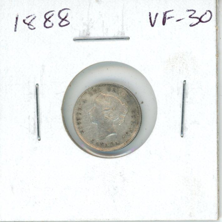 1888 Canadian Victorian Silver 5 Cents. VF-30.