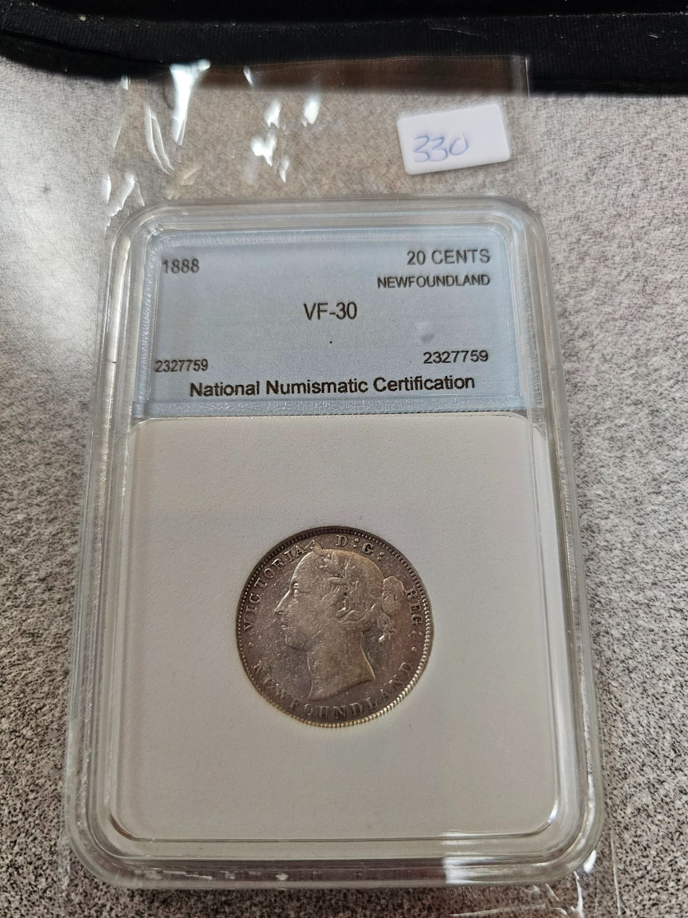1888 Graded VF-30 Newfoundland twenty cents 20¢