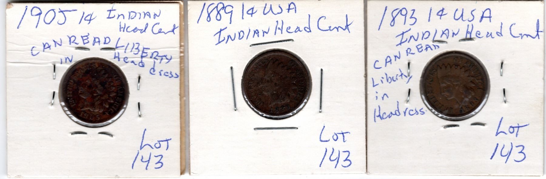 1889 1893 1905 BETTER GRADE INDIAN PENNIES USA