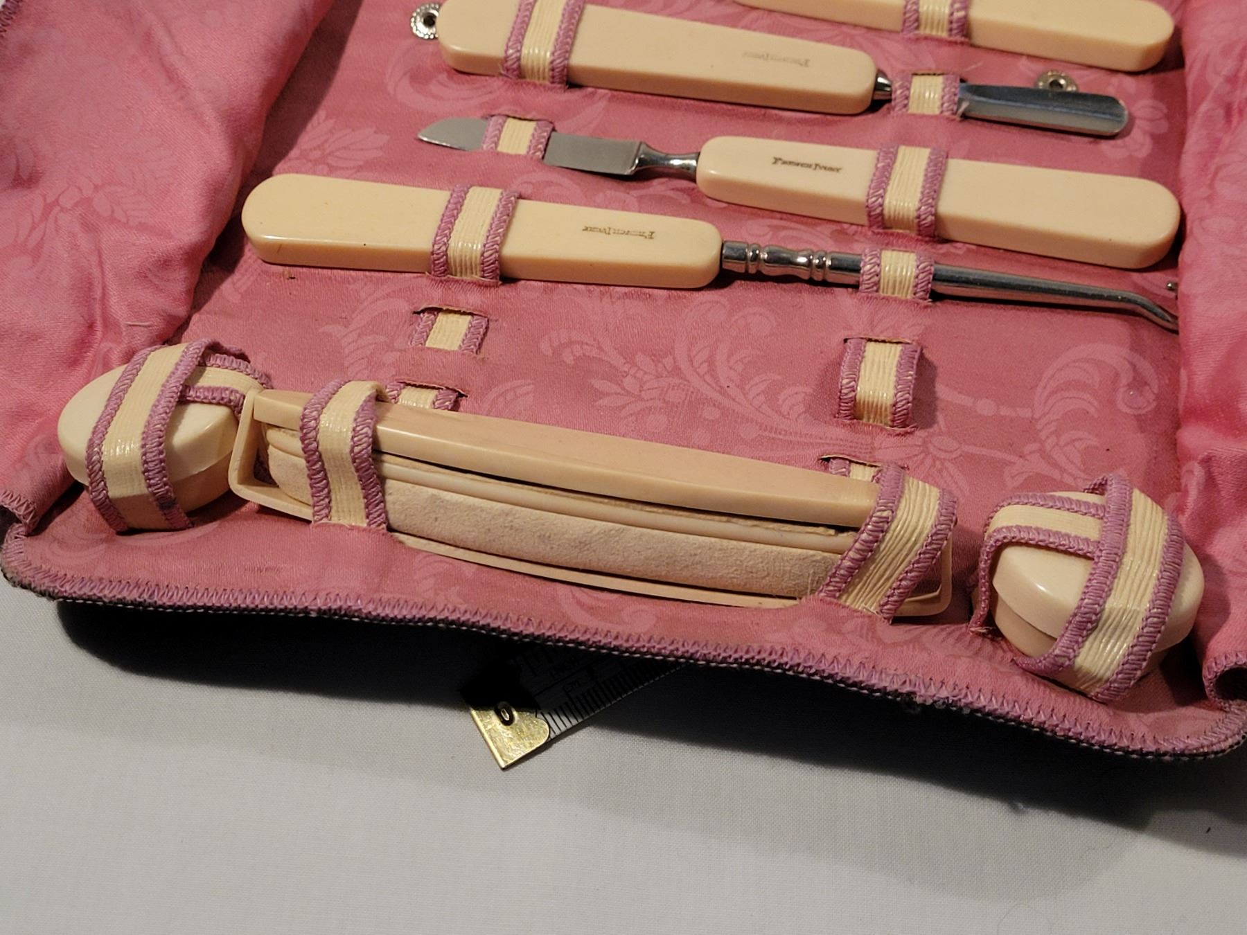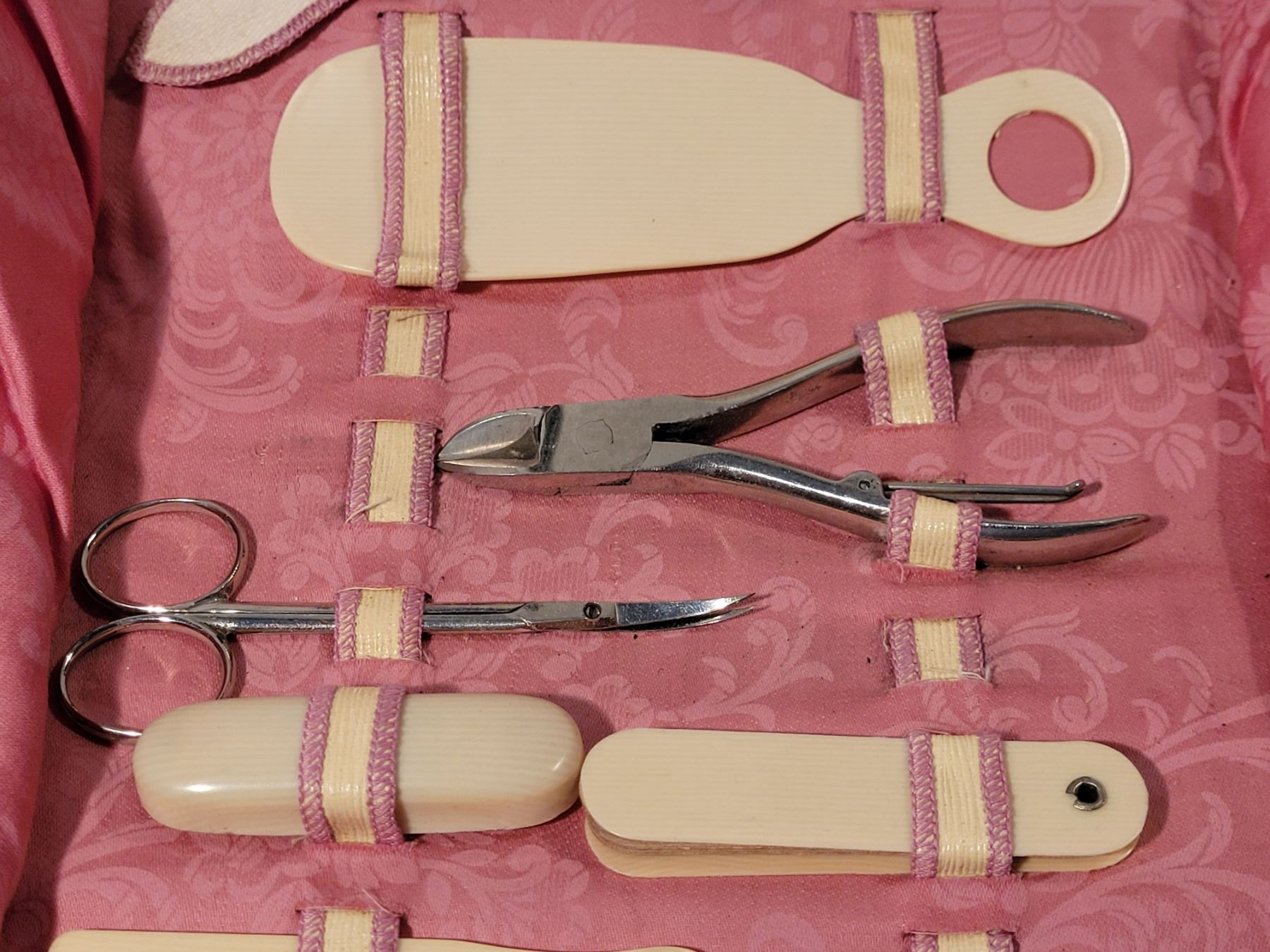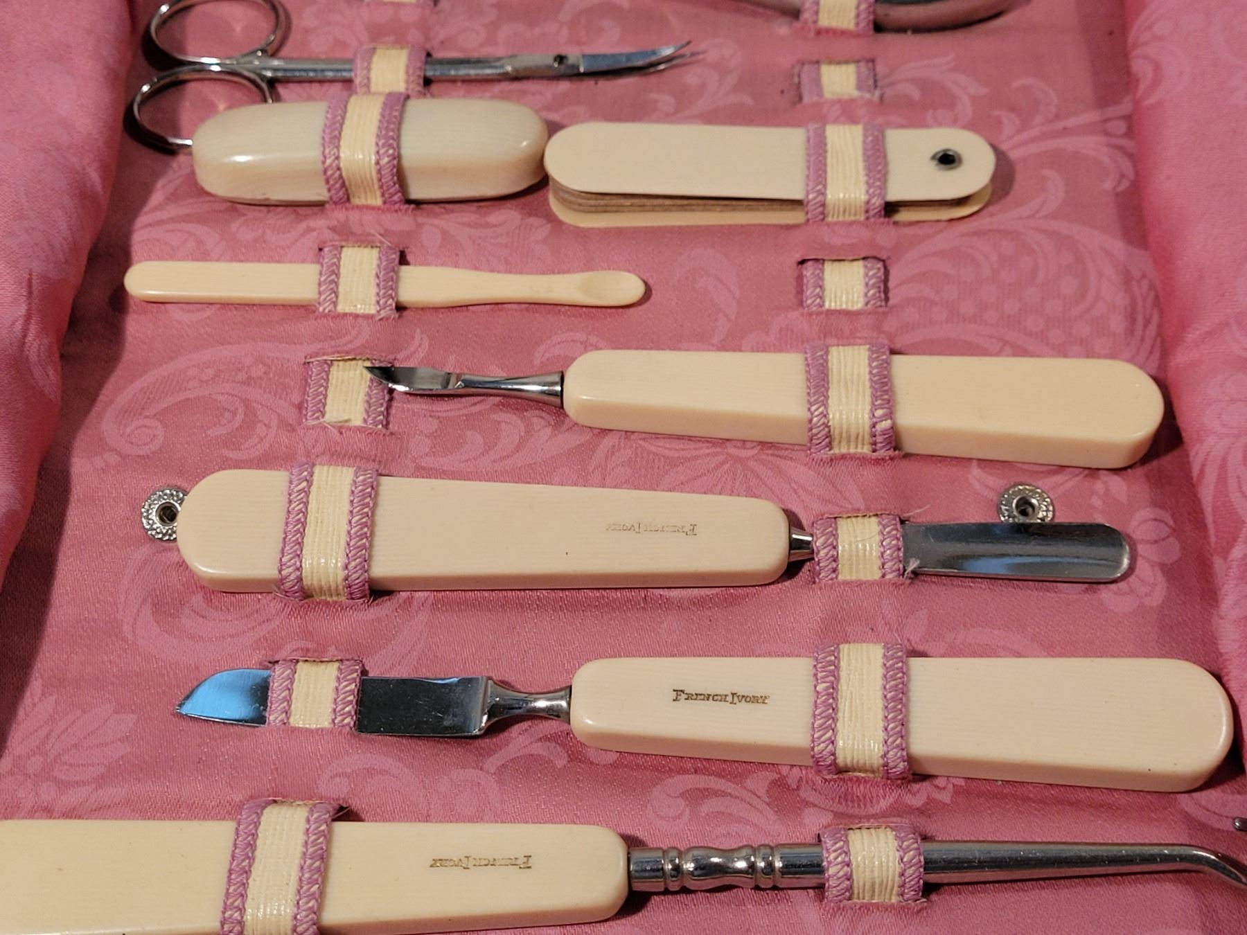 1890's-1920's Antique French Ivory manicure set in excellent condition.