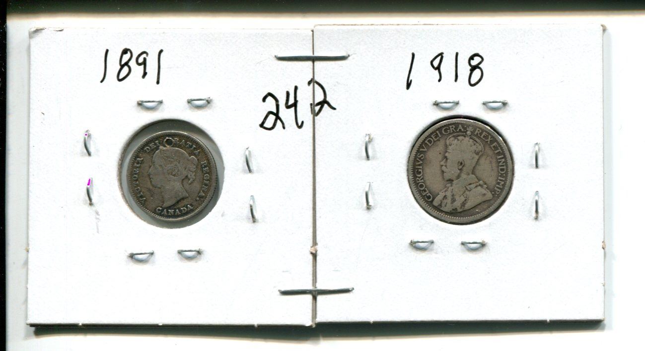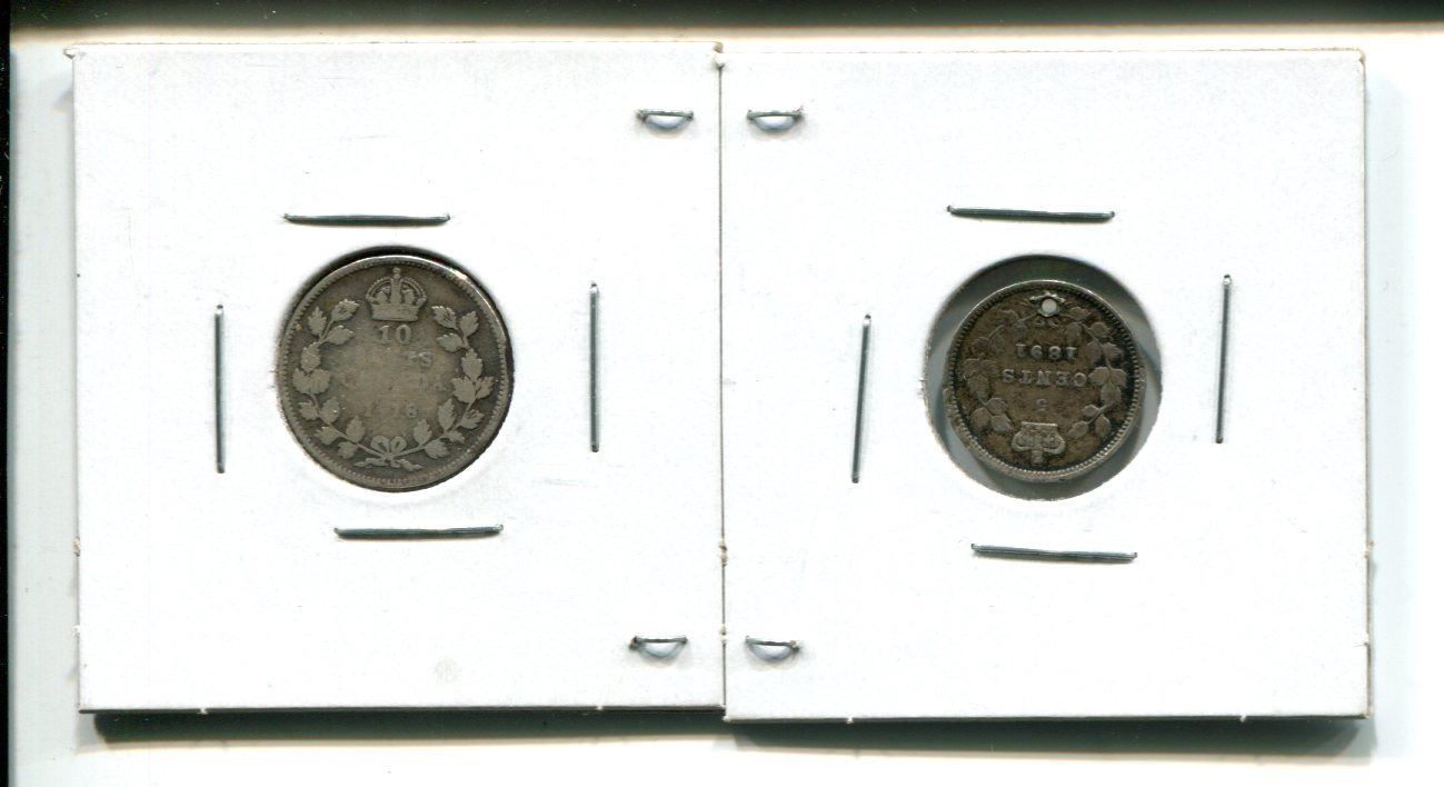 1891 5 cents 5¢ (hole punch) & 1918 10 cent 10¢