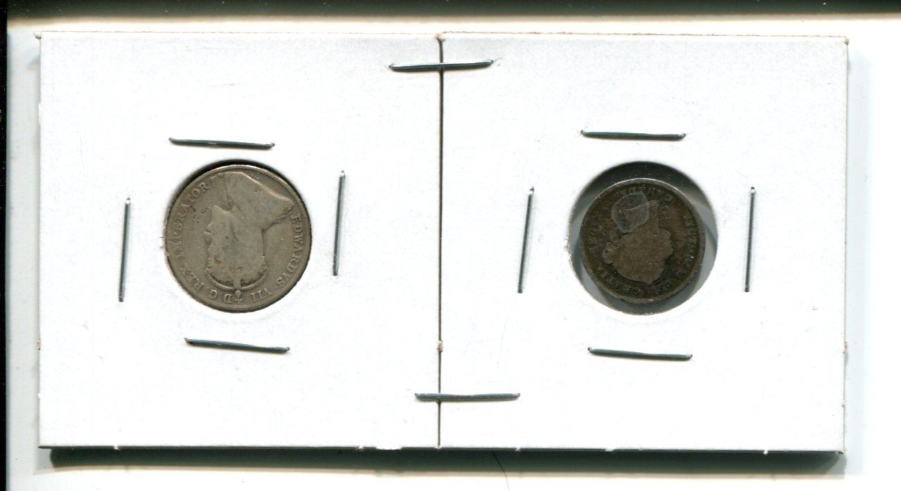 1891 Canada 5 cents 5¢ five cent & 1910 Canada 10 cent 10¢