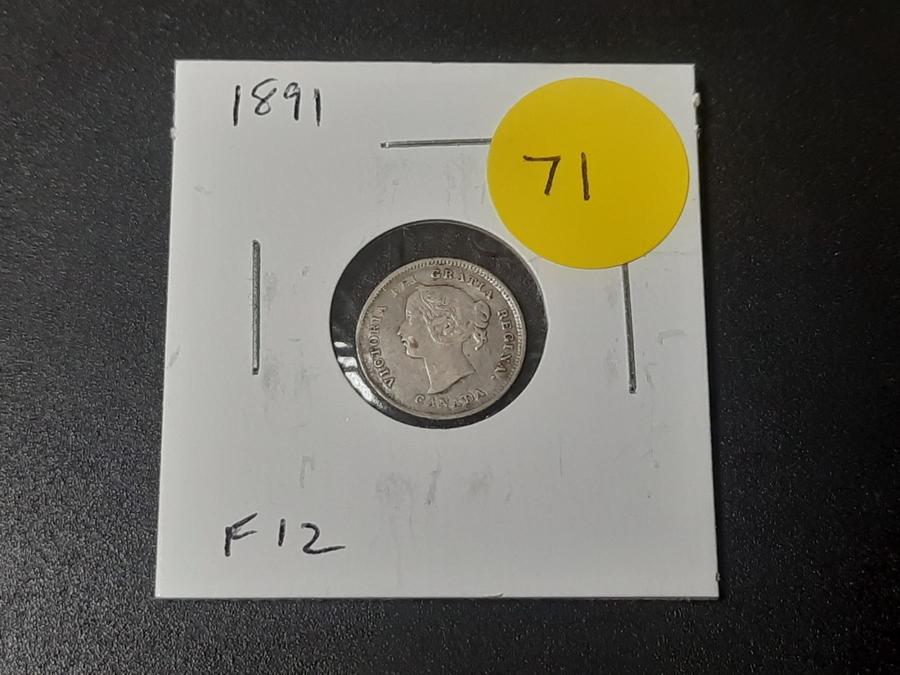 1891 Canadian Victorian Silver 5 Cents. F12.